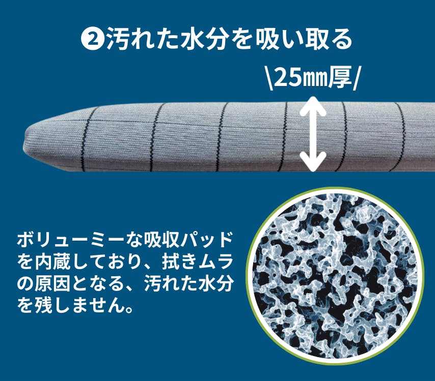 さらに厚手パッドを内蔵したことでガラスにしっかりフィットし、軽いタッチでムラなく仕上げられるようになりました。