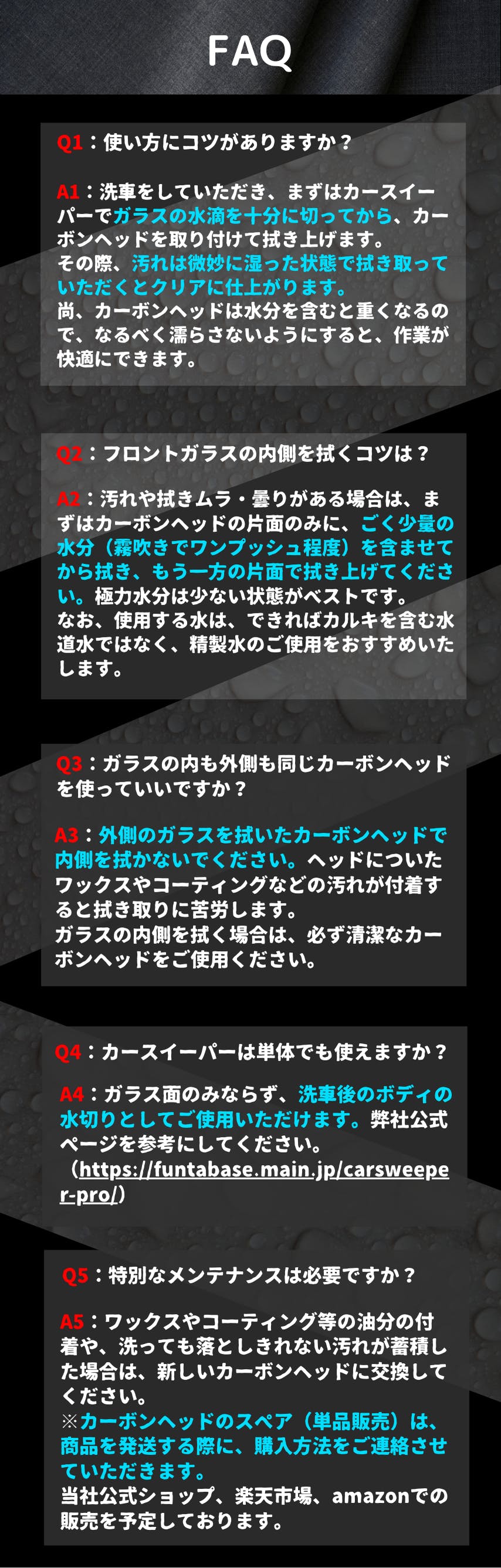 2026/02/26 16:37サポーターの皆さま、たくさんの応援をありがとうございます。まずは第一目標の30万円を突破いたしました!ありがとうございます!!https://camp-fire.jp/projects/924563/view今回は、カーボンスイーパーのカーボン素材に込めた想いを少しだけお話ししたいと思います。ある日、何気なくテレビを見ていたときのこと。バーテンダーが高級グラスを丁寧に磨くシーンが映し出されていました。その手に握られていたのが、「カーボンファイバー製のクロス」。透明度が高く艶やかに仕上がった高級グラスに思わず見入ってしまい、「これをクルマのガラスに使えたら、すごく綺麗に仕上がるのでは?」とひらめいたのが始まりです。早速、同じものを取り寄せて試してみましたが……現実はそう甘くありませんでした。クロスが水を含むと極端に滑りが悪くなり、特に車のガラス面では抵抗が強くて、スムーズに拭けない。いくら無理やり拭いても「うーん、これでは納得できない」と感じる仕上がりと効率の悪さ。理想と現実のギャップに、しばらくは試行錯誤が続きました。そこで、ある時ふと発想を転換しました。「拭くためのクロス」としてではなく、“水切りの後に使うスイーパーのヘッド”として組み合わせたらどうだろう?当社のカースイーパーのヘッドにカーボンを採用してみたところ──まるで魔法のように使い勝手が変わったのです。水滴を切った後のガラス面に吸い付くようにフィットし、軽いタッチでもムラなく仕上がる。しかも、厚手パッドを内蔵することで、均一な圧がかかり、「するっ」と気持ちよく拭き上げられるようになりました。私たちは、一般的に抱くカーボンの“強さ”ではなく、「繊維のしなやかさ」と「拭き取り性能」に着目したのです。その結果、ただの素材ではなく、“理想のガラス仕上げ”を支える主役に進化したのです。ぜひ、車はもちろんのことご自宅のガラスや鏡類の拭き取りにご利用ください!最後までお読みいただき、誠にありがとうございました。 もっと見る
