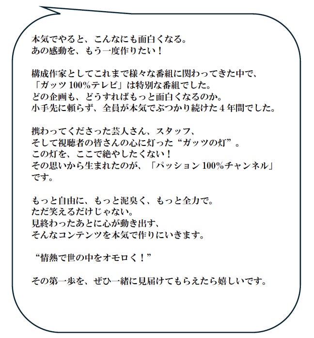 PASSION 100% Ch を制作するのは