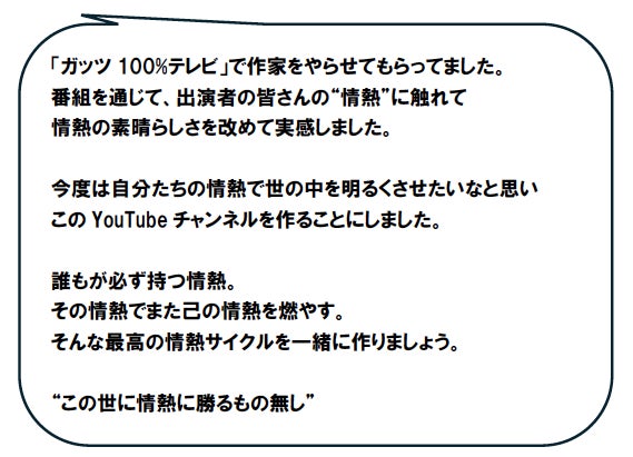 新しいYouTubeチャンネル(情熱伝染スイッチ)です。