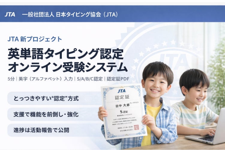 一般社団法人日本タイピング協会(JTA)は、タイピング学習と技能評価の普及を目的に活動しています。