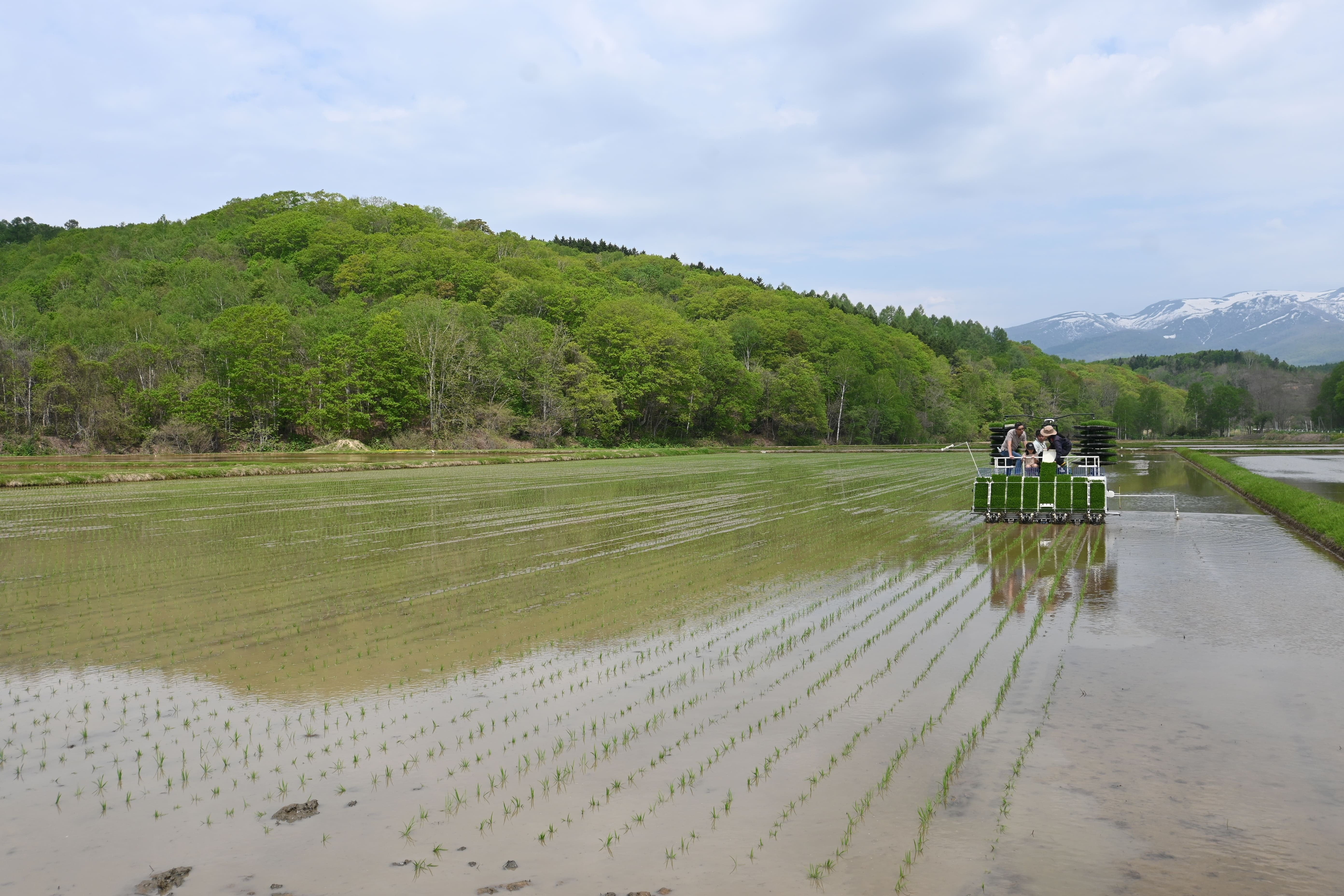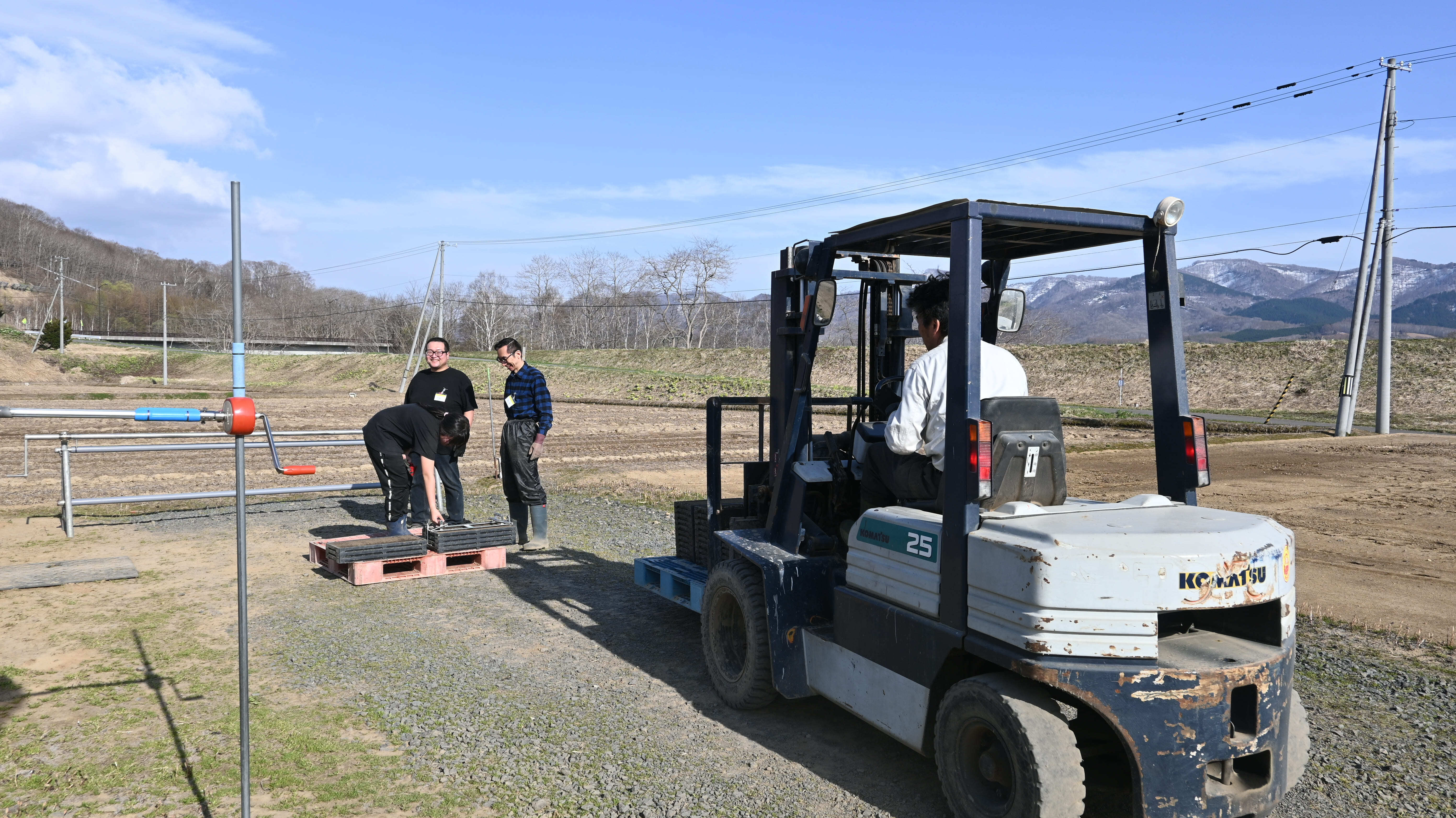作業内容:田植え機への苗補填、ハウスからの苗運び出し、パレット洗いなど