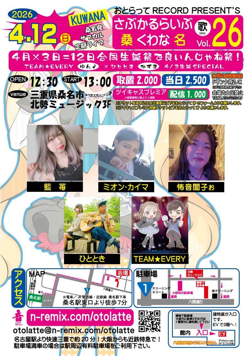 ★☆4月12日(日) さぶかるくわな26/三重北勢MUSIC