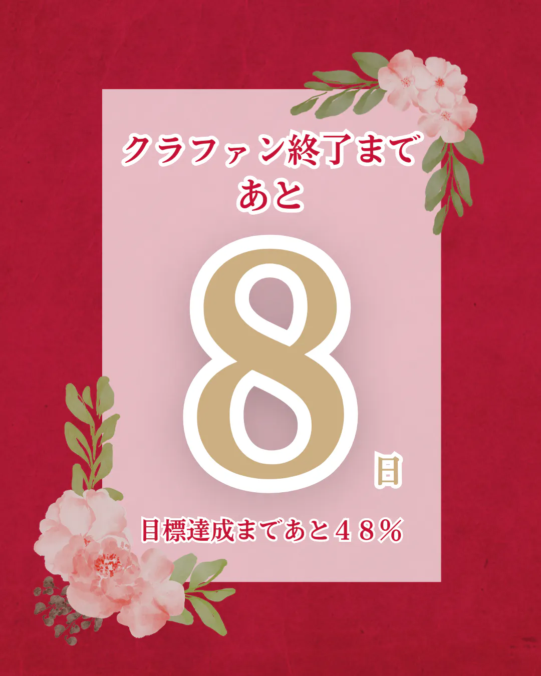 \クラファン終了まであと7日/あっという間に残り1週間!現在目標達成率60%。あと9万4千円で目標達成です!新しい返礼品を追加予定で動いています。既にご支援いただいている方も、ご支援がまだの方も、喜んでいただけるといいなぁ^^本日もよろしくお願いいたします!