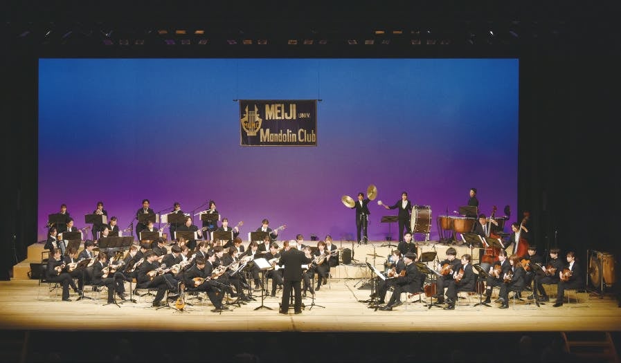 「明治大学マンドリン倶楽部」は昭和の大作曲家「古賀政男氏」が1923年に明治大学入学と同時に創部に加わったことで知られる、104年の伝統を誇るアマチュア音楽団体です。
