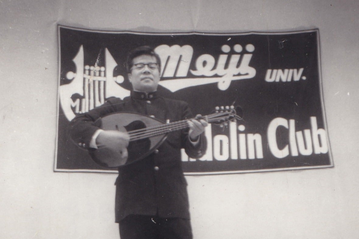 私たちは「明治大学マンドリン倶楽部」の卒業生で、音楽家「甲斐靖文氏」の教え子でもあります。