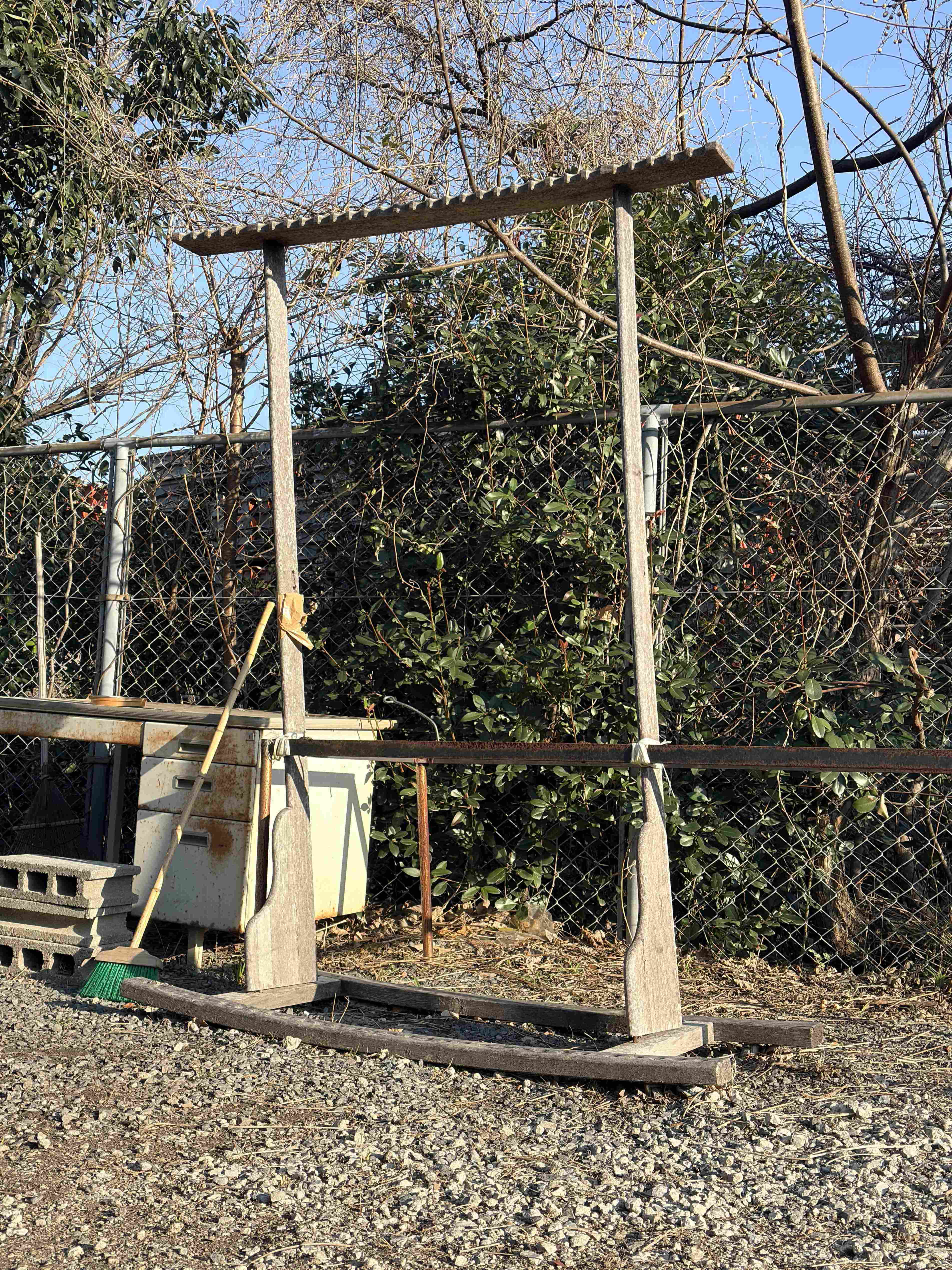 屋外でも雨風に晒されてもぴくともしない、24時間365日、僕たちの弓を預けられる「最強の弓立て」を自分たちの手で作り上げます。