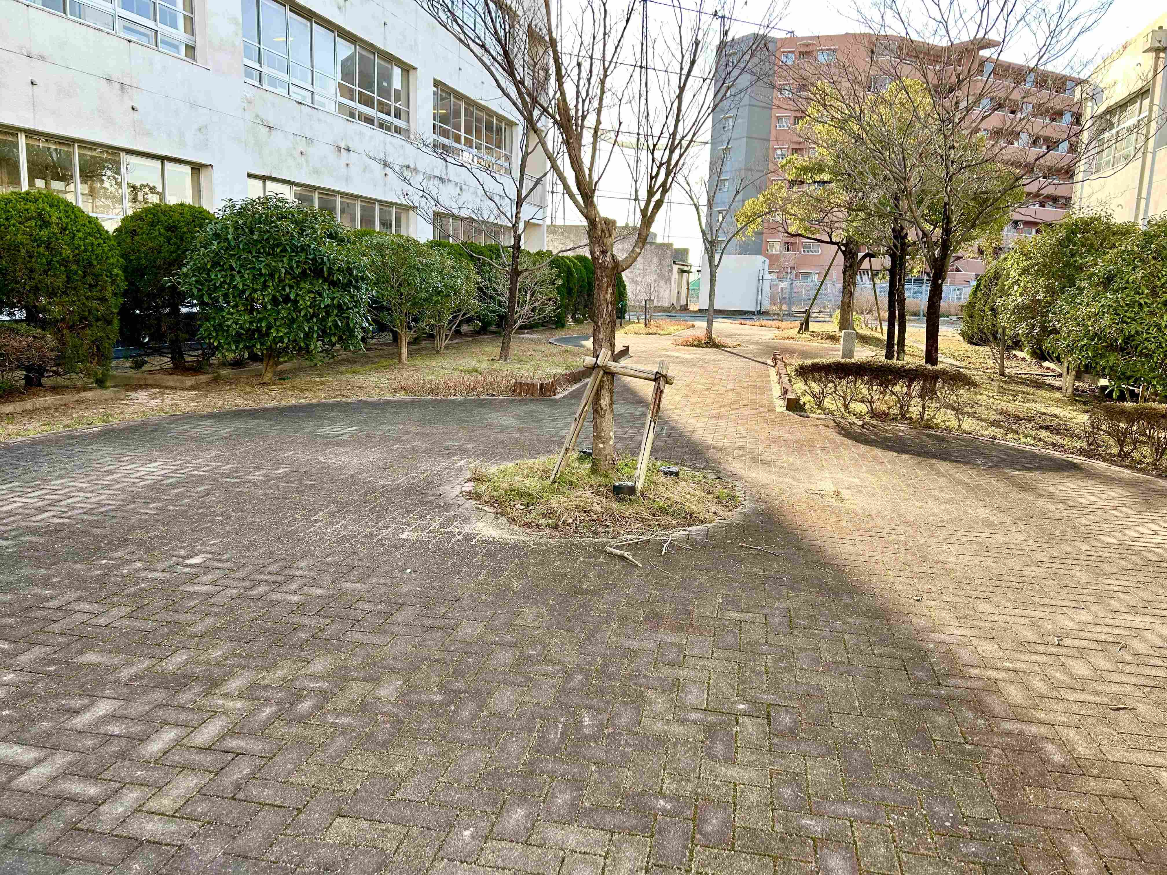 私達の学校の中庭は、広く、緑豊かな場所です。