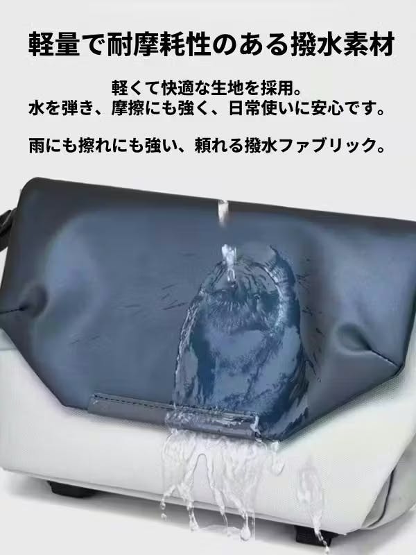 撥水生地がしっかり弾くから、大切な財布やスマホを濡らさず安心。天気を気にせず使える相棒に。