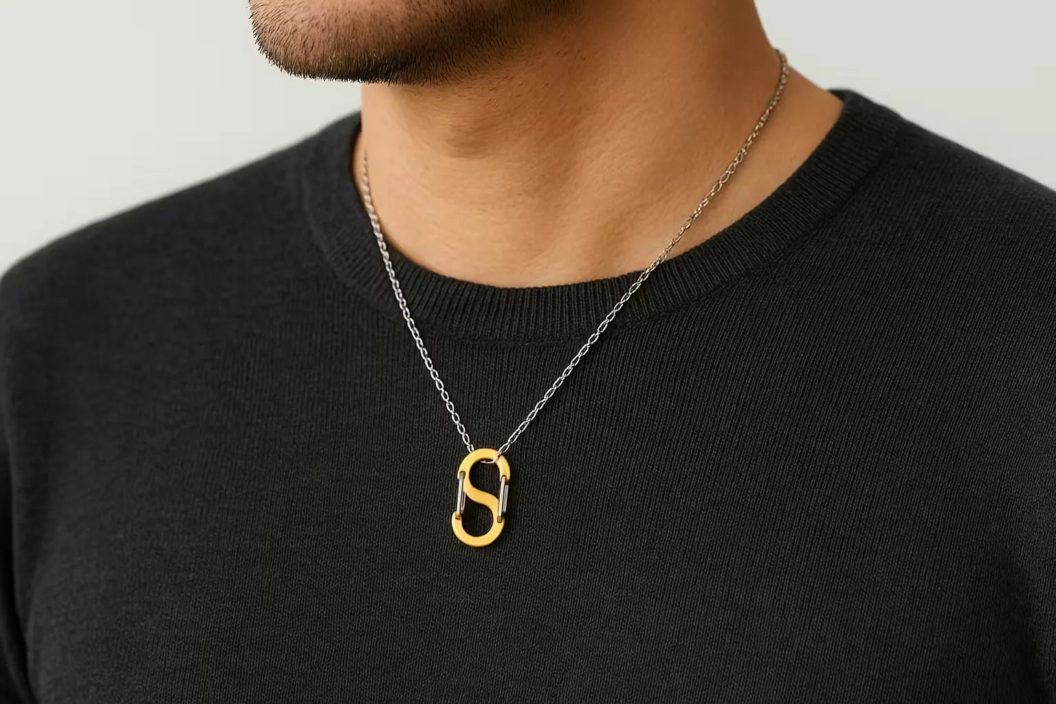 ペンダントトップとして胸元をクールに演出します。