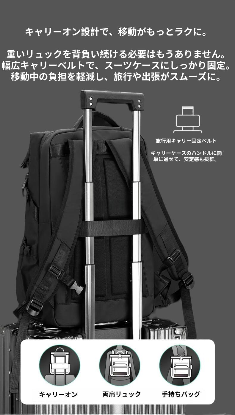 旅行や出張で重宝される「キャリーオン設計」。