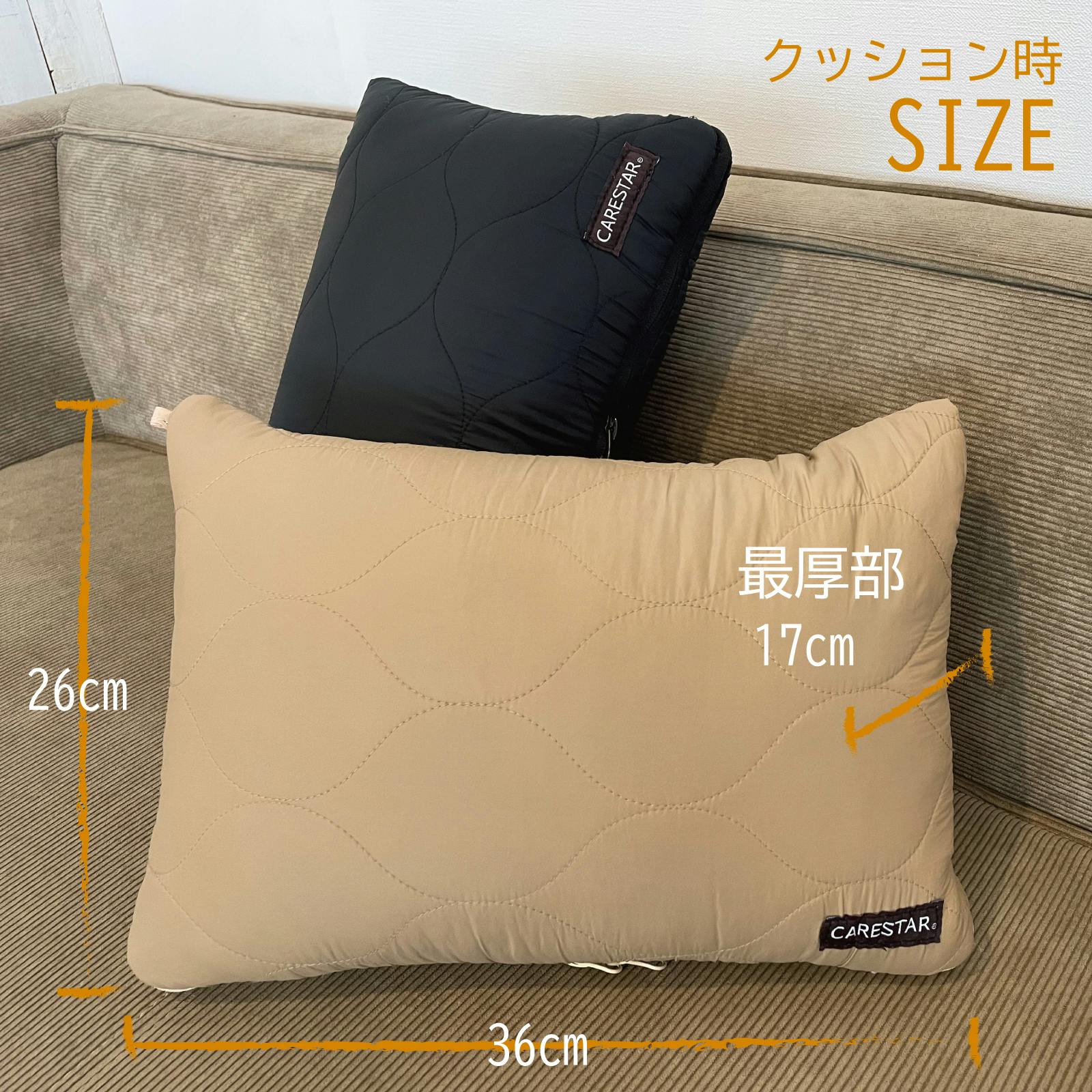 機能:熱収集蓄熱素材綿、収納してクッションになるコンパクト構造