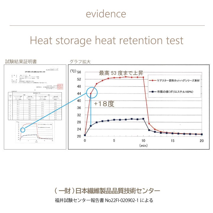 蓄熱保温性試験済み「1分で+18℃」