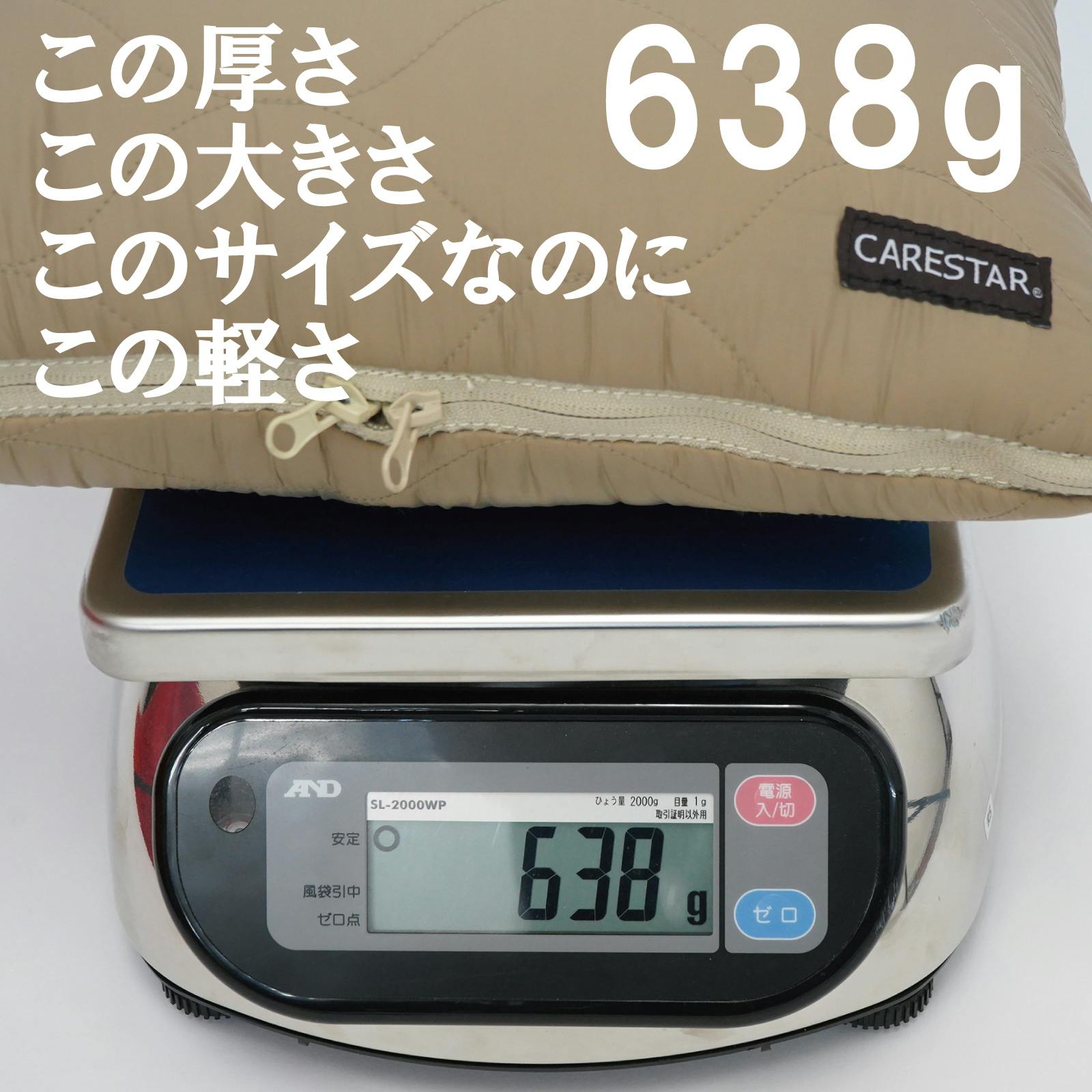 - まれな極寒だけでなく、いつもの日常の寒さと使いやすさにこだわった。極厚なのに超軽い約630g