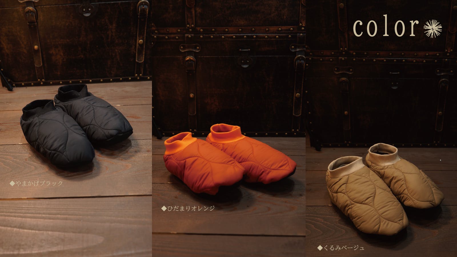 カラー:やまかげブラック(ブラック×カーキ)、くるみベージュ(ベージュ×ブラウンベージュ)、ひだまりオレンジ(オレンジ×ダークブラウン)