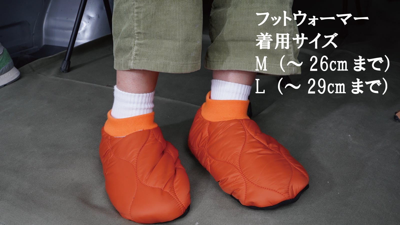 フットウォーマーサイズ:M(~26cmまで) L(~29cmまで)
