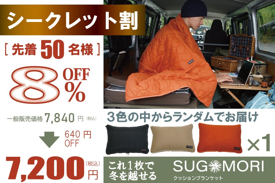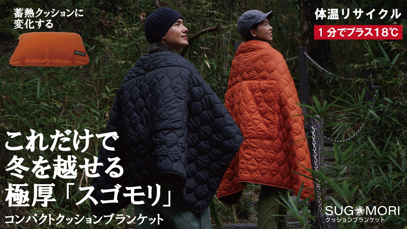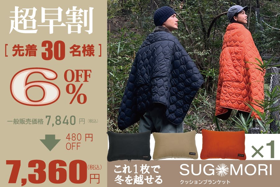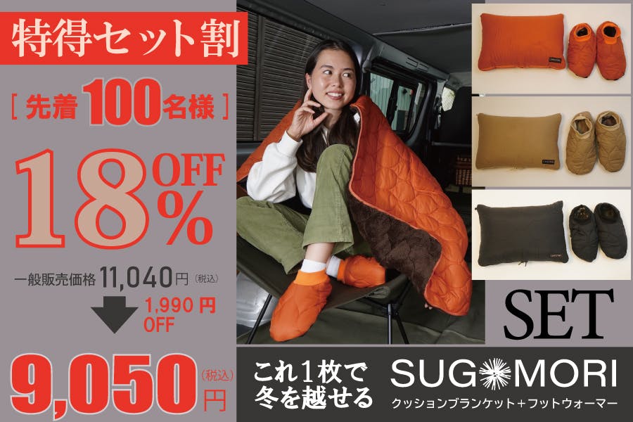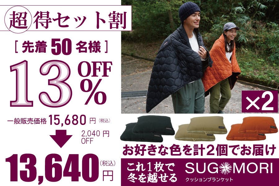 累計1,640万円突破した「蓄熱SUGOMORIクッションブランケット」との超お得なセットリターンをご用意!!