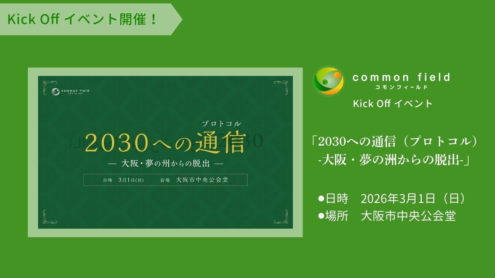 2026/03/02 11:36【祝・目標達成】未来への「原っぱ」づくり、本格始動します!大阪の熱狂を、一過性のものではなく未来へ。先日まで挑戦していたクラウドファンディングが、昨日ついに終了いたしました!結果は、目標を大きく上回る【達成率148%】。64名もの方々から、総額444,050円のご支援をいただきました。「2025年のあの熱量を、今後も絶やしたくない」そんな私たちの個人的な強い想いから始まったこのプロジェクト。これほど多くの方に共感し、応援していただけるとは思っていませんでした。本当にありがとうございます。common fieldが、これからつくるものいただいたご支援をもとに、私たちは本格的に「一般社団法人common field」として歩み出します。世界と日本が混ざり合う交流拠点づくり「やりたい」を形にするためのワークショップやイベントプロの視点で語る国際イベントの裏側トーク(しーさんぽ)など、大阪を拠点に、好奇心が連鎖する「common field(原っぱ)」を耕していきます。クラウドファンディングは終了しましたが、common fieldの挑戦は始まったばかりです。「世界とつながりたい」「面白い場所を一緒に作りたい」「次の国際イベントに興味がある」そんな方は、ぜひこれからの私たちの活動をチェックしてください!今後も、誰もが参加できるイベントや、ワクワクするような発信を続けていきます。これからのcommon fieldをどうぞよろしくお願いします! もっと見る【祝・148%達成】大阪の熱狂を未来へ。皆様と共に『common field』が動き出します!(支援者様に向けた限定記事)