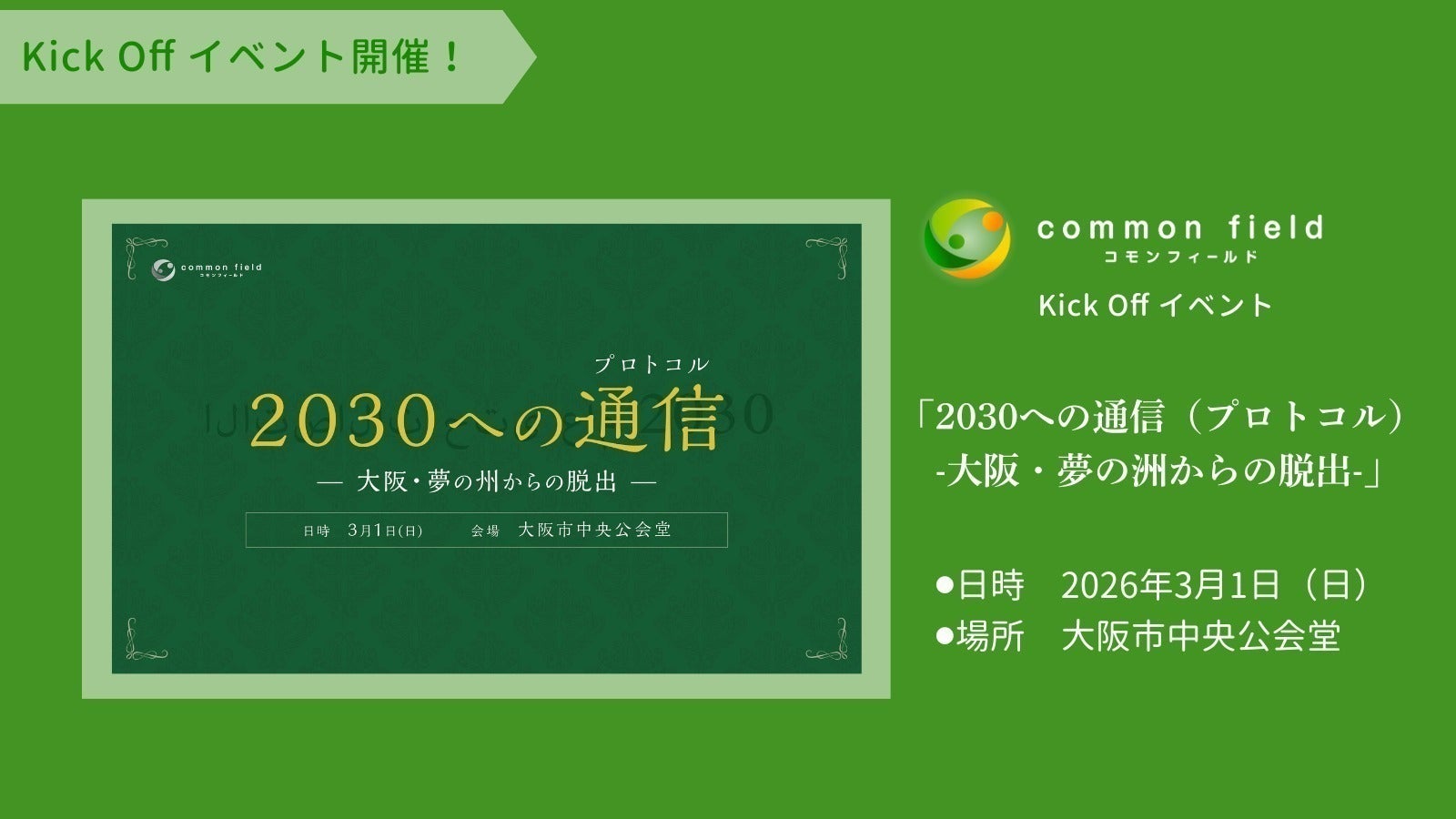 大阪の熱狂を未来へ繋げる!『common field』始動プロジェクト