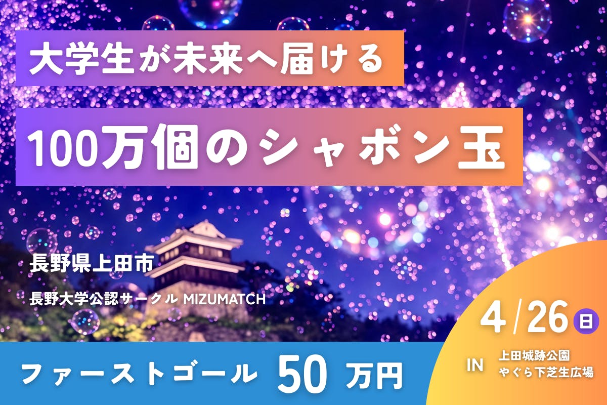 私たち長野大学MIZUMATCHサークルの学生が主体となり、上田の夜空に無数のシャボン玉を浮かべます。
