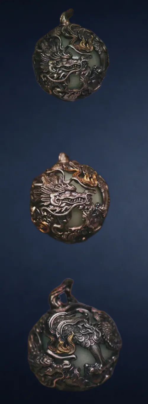 濁りのない深緑が上品で、龍の躍動感を引き立てます。