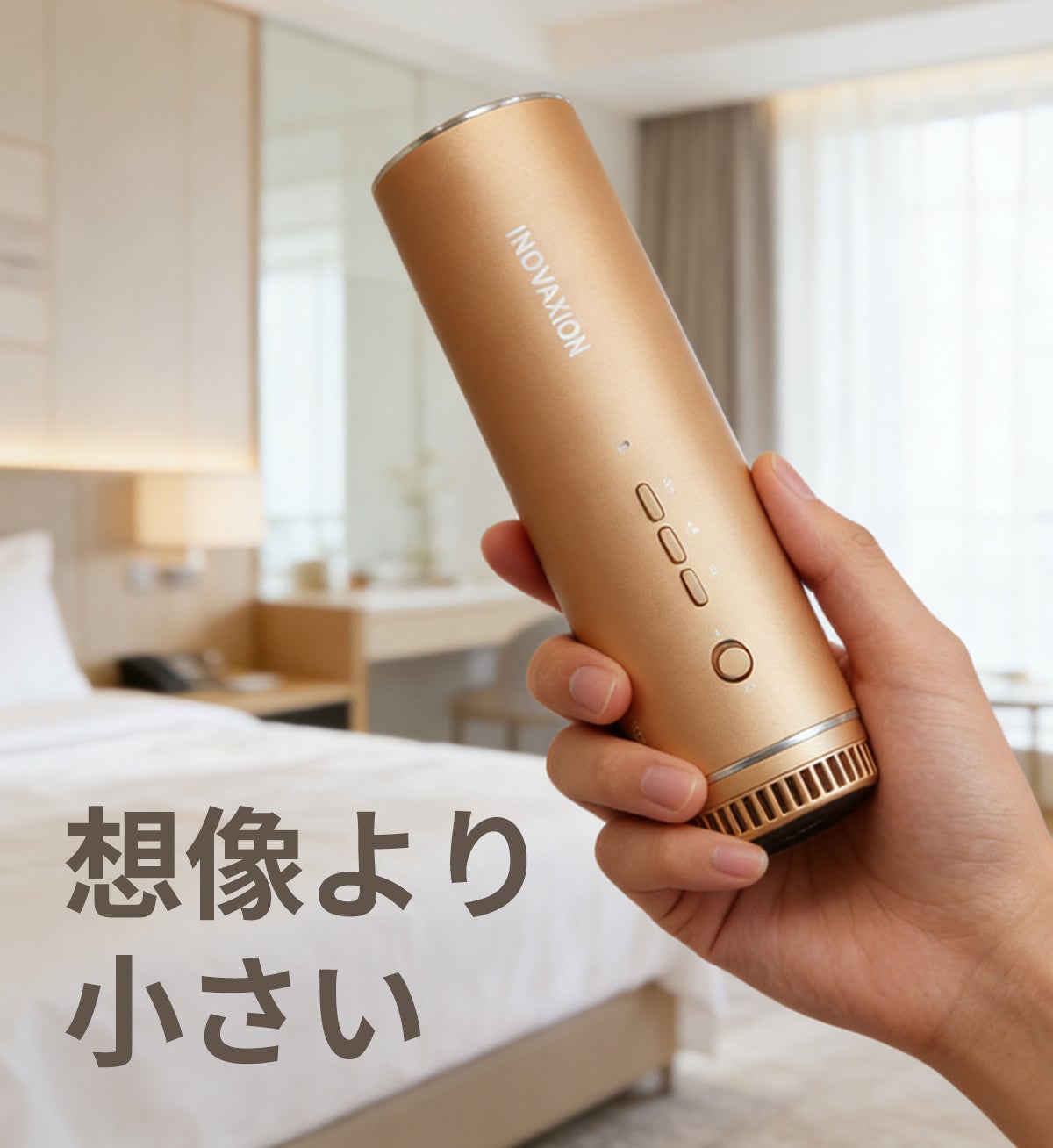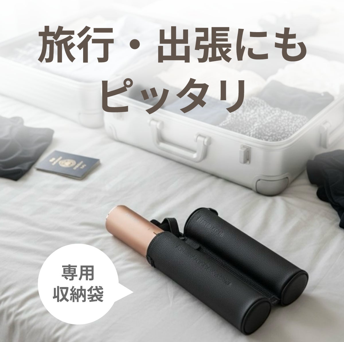 その大きさは、500mlのペットボトルよりもコンパクト。専用の収納袋に入れれば、ポーチやバッグの小さなポケットにもすっぽり収まります。出張や旅行の荷物を増やさず、いつものサロン級ケアをどこへでもお持ちください。貴重なバッグスペースを解放し、移動の快適さを一新します。