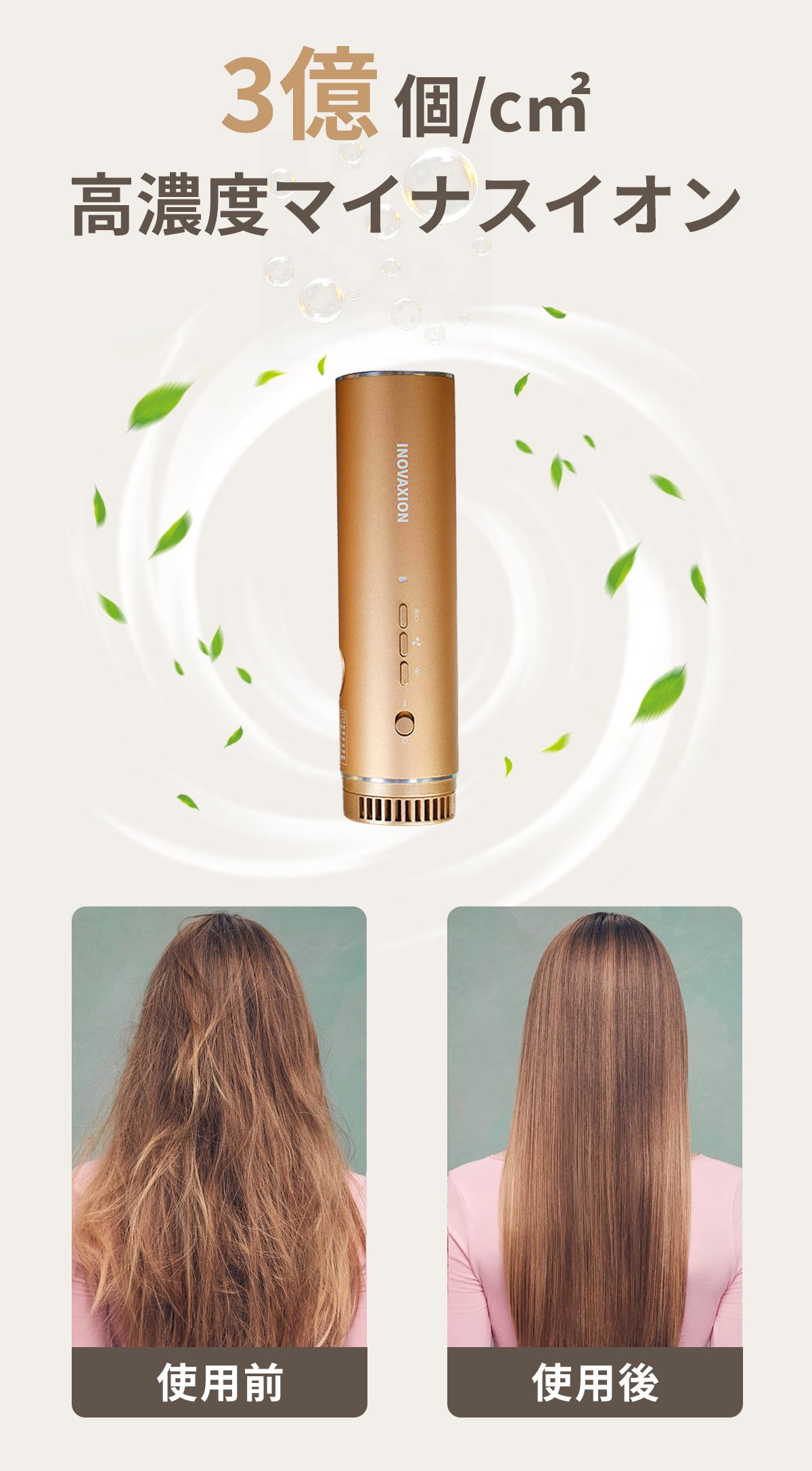 毎日の使用がヘアケアに。高濃度マイナスイオンが髪の表面の静電気を中和し、うるおいを閉じ込み、広がりとパサつきを防ぎます。高温によるダメージから髪と地肌を守り、ツヤとまとまりをサロンのように仕上げます。