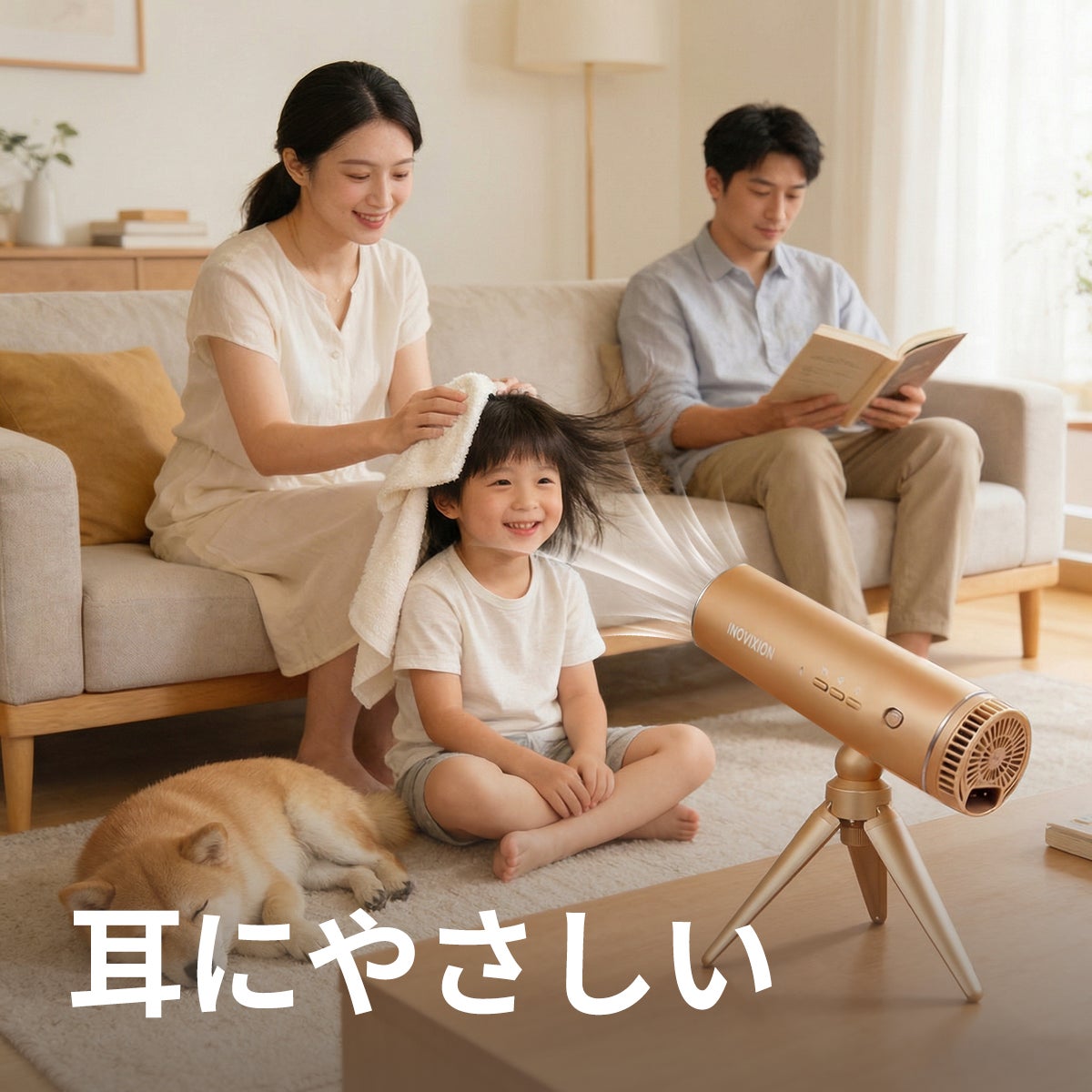 モーターと風道の最適化で、従来品より低騒音に。就寝前や早朝でも周りを気にせず使え、毎日家族全員の「きれい」をサポート。セルフクリーニング機能でいつも清潔に保てます。同時に、内蔵されたスマート恒温センサーが一定の快適温度をキープ。お子様やペットのデリケートな肌にも優しい。