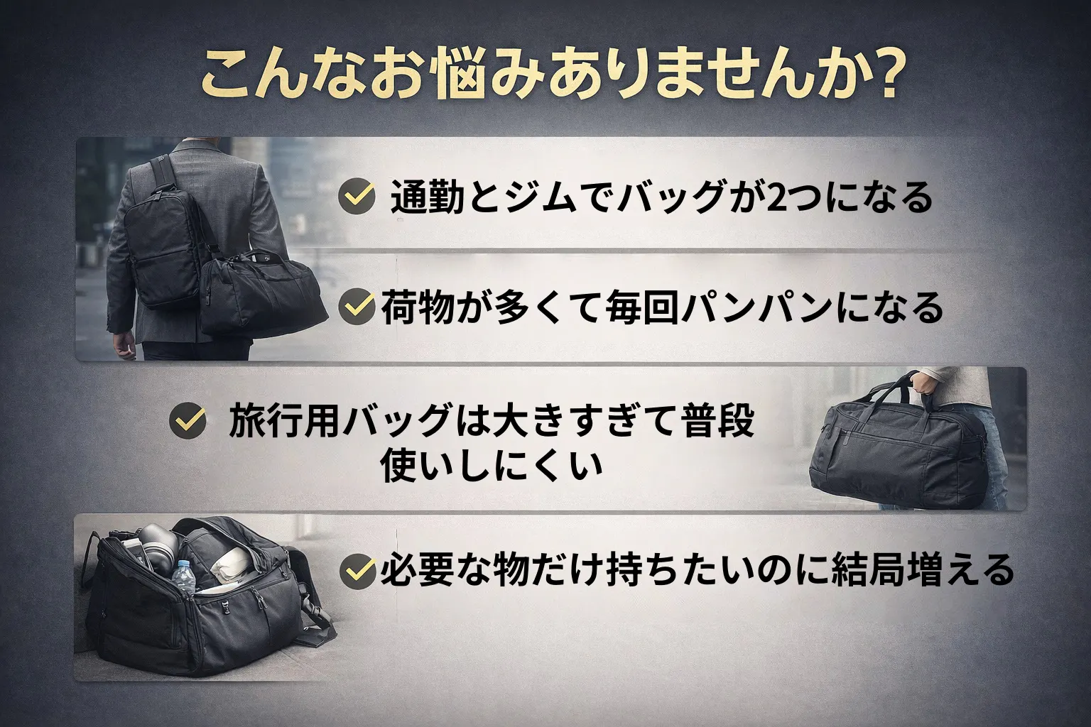 「今日はどのバッグにするか」ではなく、「これ1つでいい」