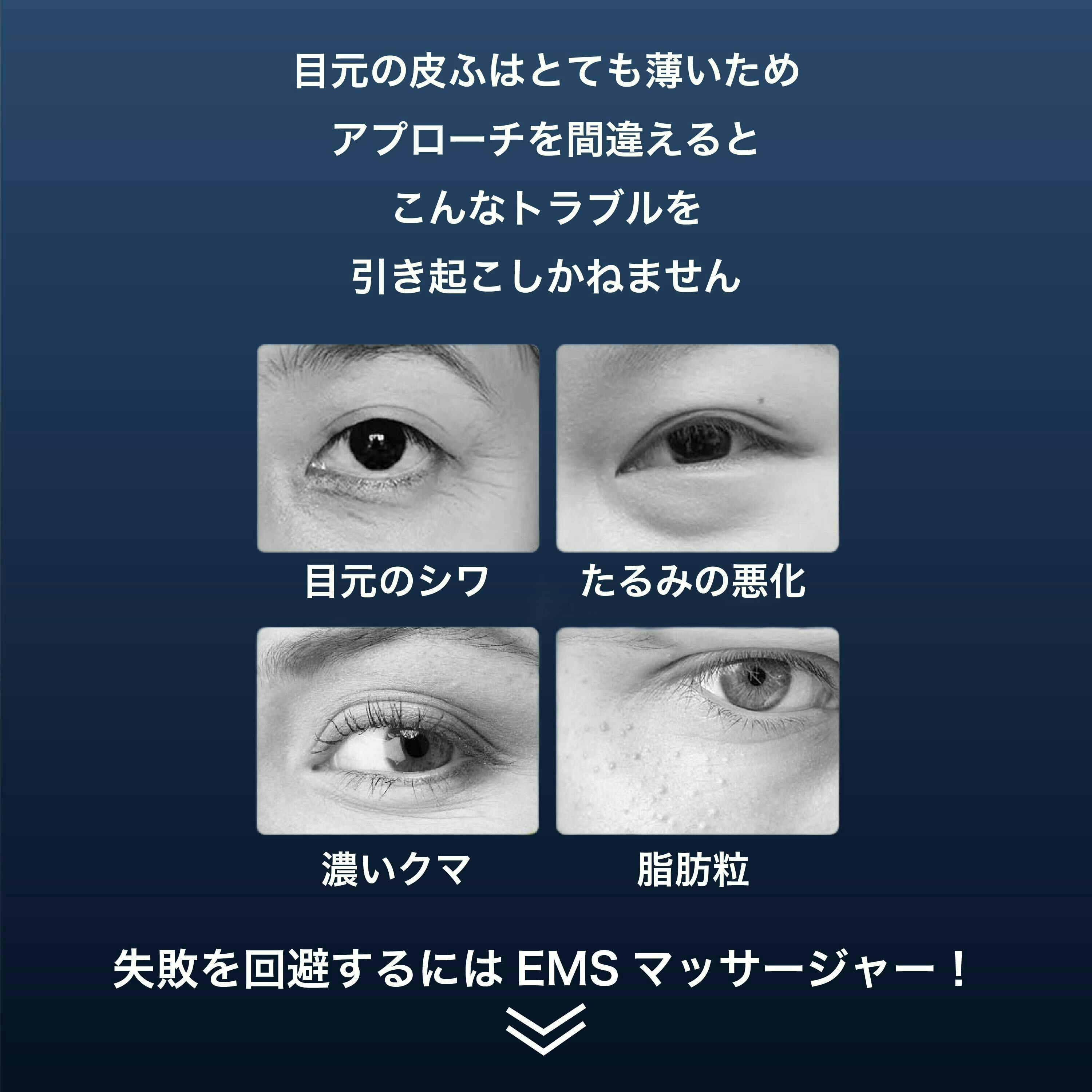 しかも、目元のケアは意外と簡単。毎日たった数分のEMSやマッサージを取り入れるだけでも、印象は大きく変わります。