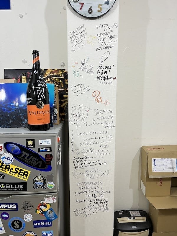 移転前最後にみんなで壁に寄せ書き1月末で退去するという話で、最後の1週間は当時3階エレベーター無しの店舗で自分でエアコンを外したり、棚や壁を解体しては毎日朝から深夜まで車に積んでは元町から須磨まで運び、めちゃくちゃ大変でした笑
