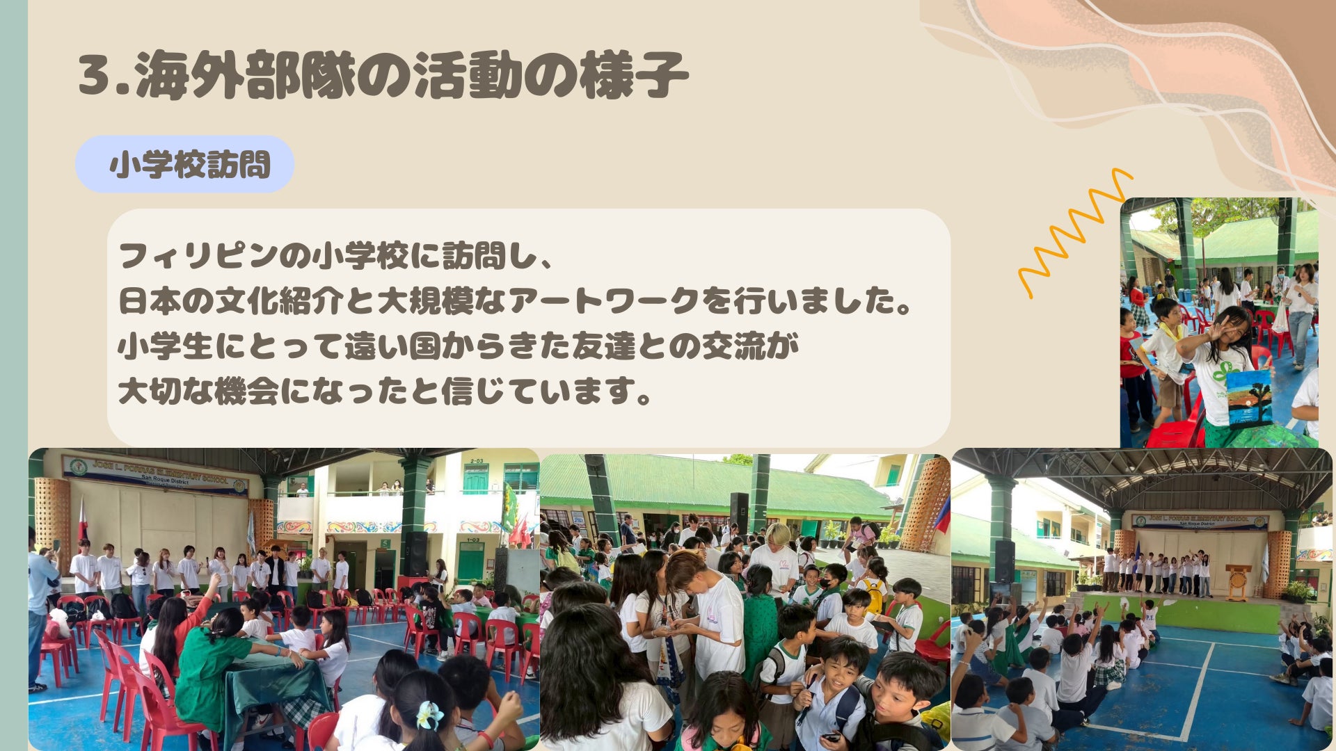 2026年春に行う海外部隊では過去最高人数となる27人で構成されており、フィリピンでの教育支援と文化交流を実現すべく、日々準備を進めています。