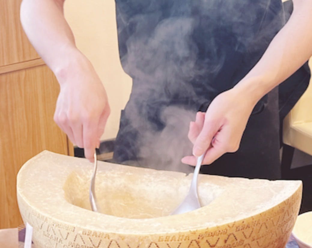 ◆24ヶ月熟成させた濃厚なグラナパダーノチーズを使用し、お客様の目の前で仕上げるチーズリゾットのライブ感は、多くのお客様に喜んでいただいています。