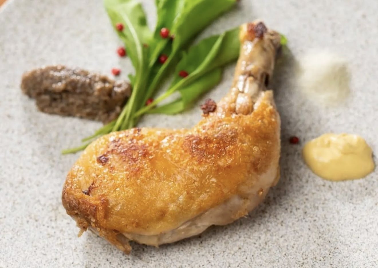 ◆ほろっとなるまで火入れした骨つき鶏腿肉のコンフィ