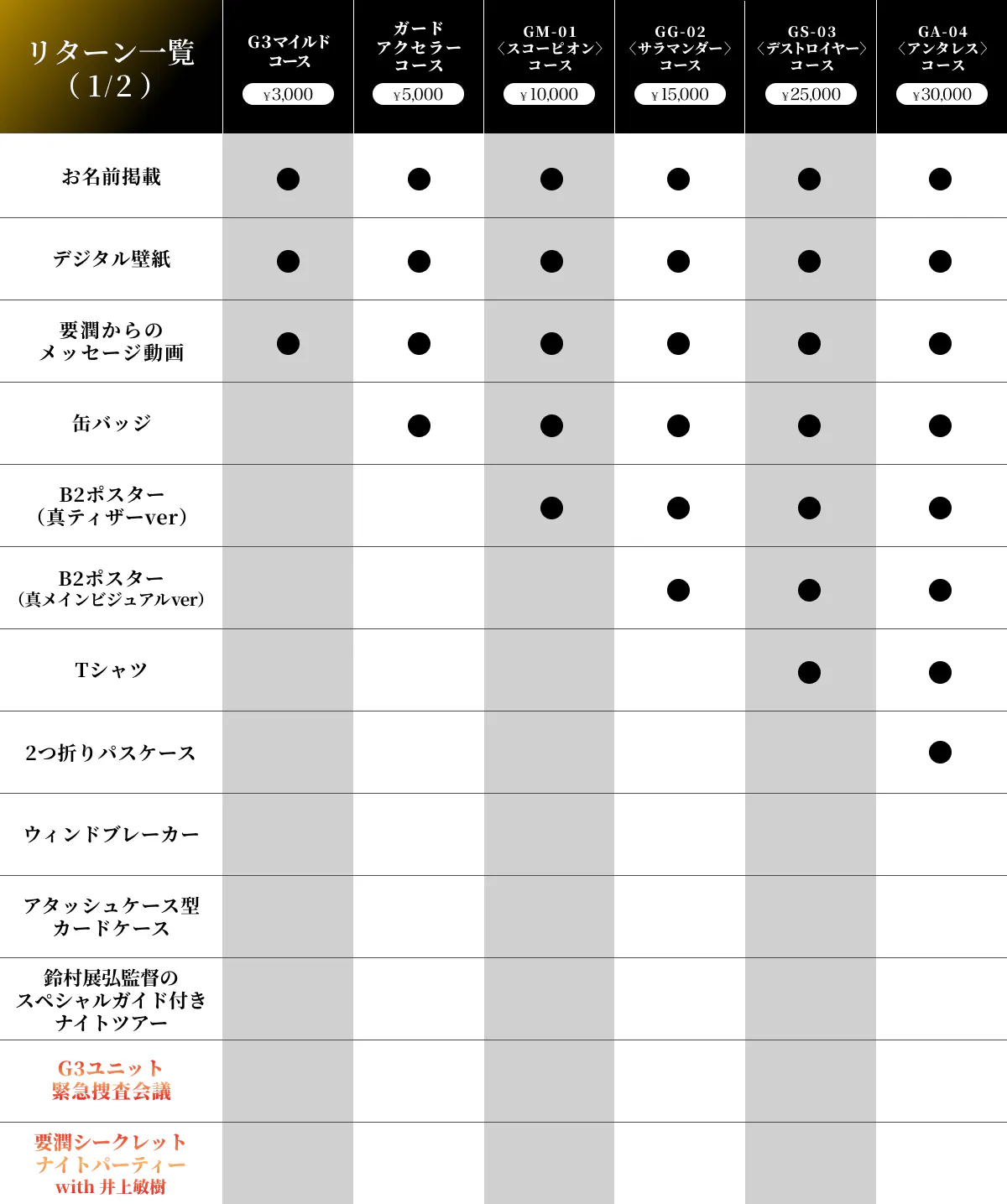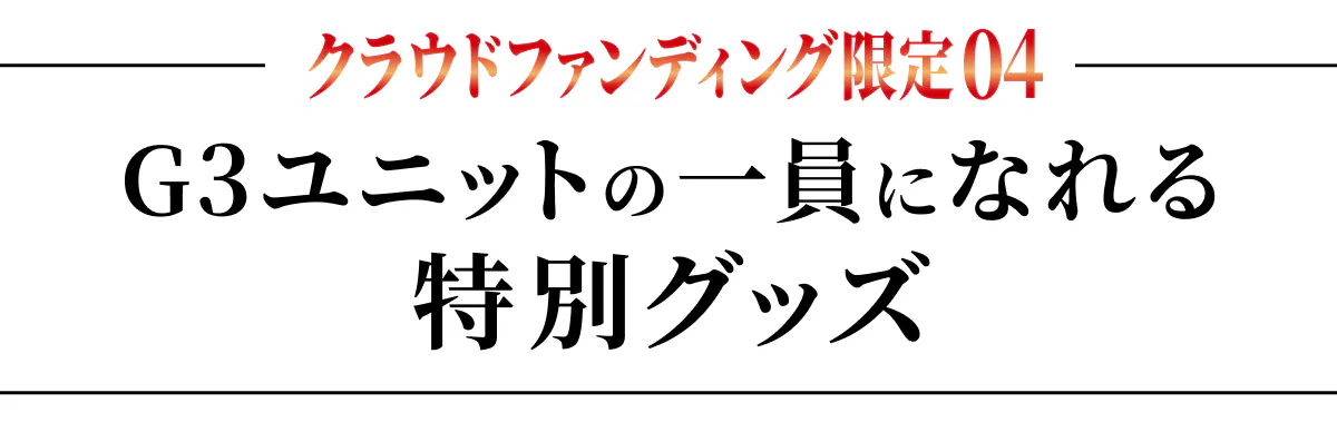 実現に向けてご支援いただくにあたり、皆様を「G3ユニット隊員」としてお迎えし、ともに本プロジェクトを盛り上げていただきたいと考えております。支援者全員のお名前は、『真アギト展』の公式サイトに掲載されます。それに加え、限定グッズや特別なナイトツアーもご用意しました。