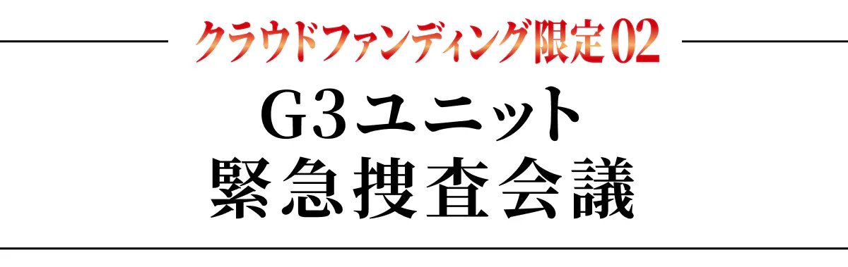 G3ユニットメンバーが集結し、一夜限りの<緊急捜査会議>を開催!要潤、藤田瞳子、柴田明良、山崎潤が25年分の想いを語り尽くす!G3ユニットメンバーのみで単独のイベントを実施するのは、『仮面ライダーアギト』25年の歴史の中でも初めての試みとなる。