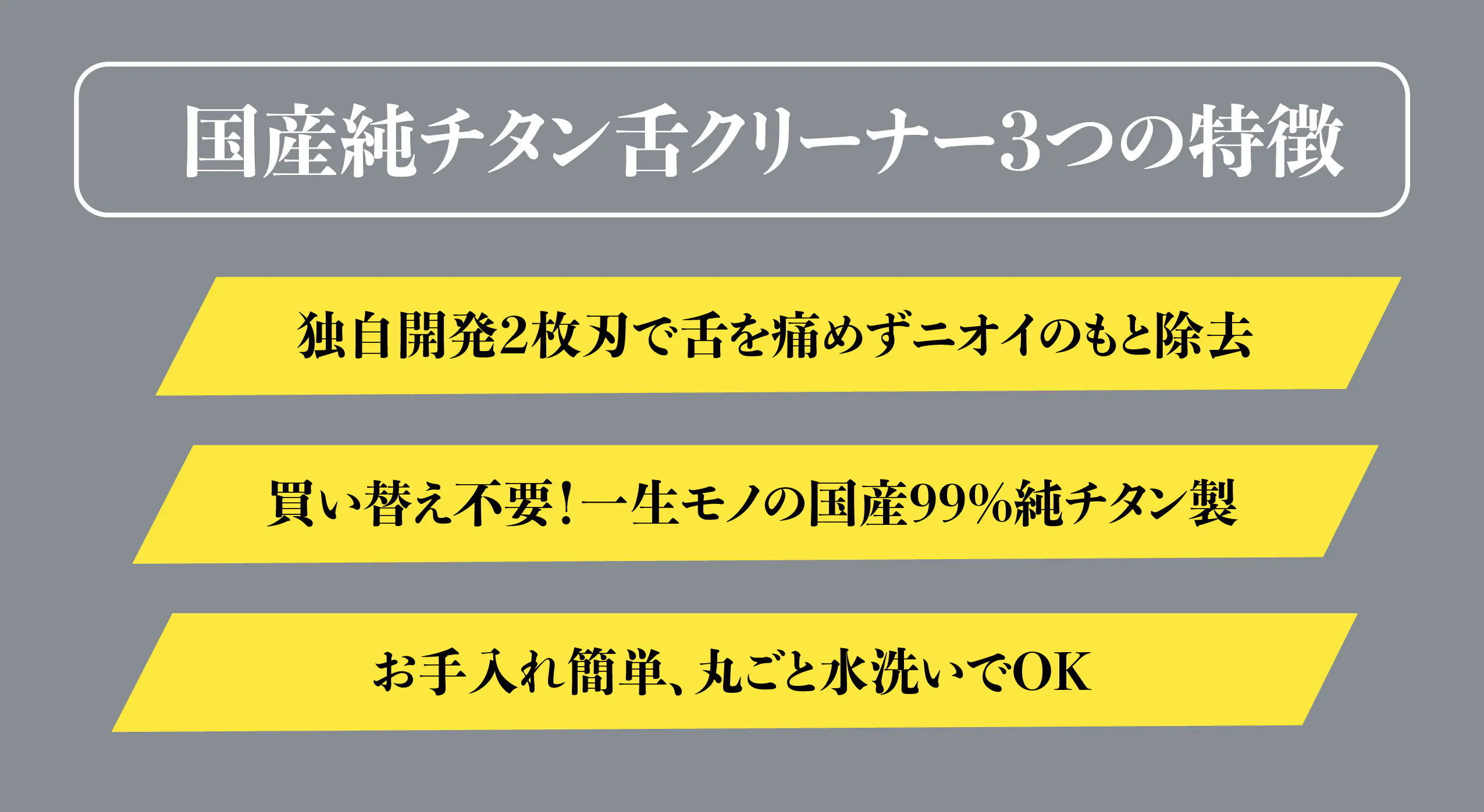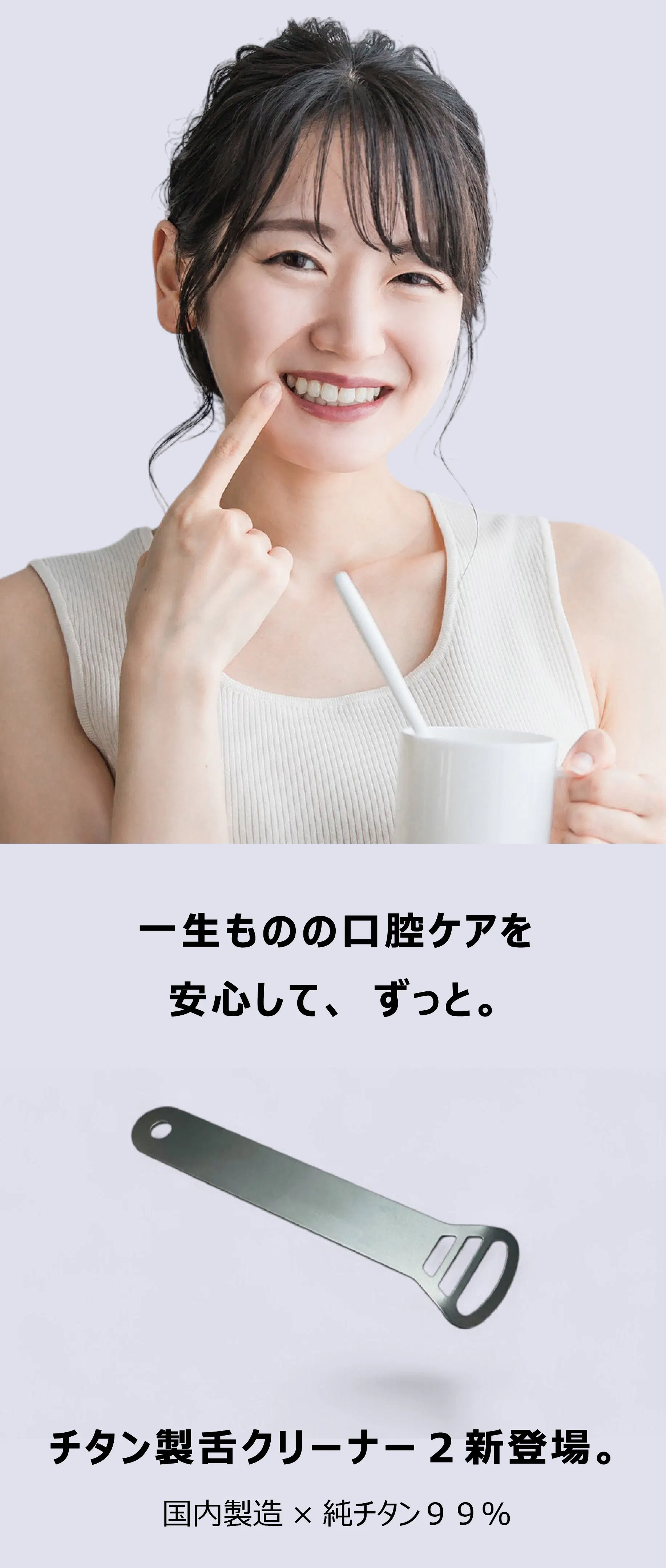 本製品である国産チタン舌クリーナー2は、同シリーズのフロスハンドルと合わせてお使いいただくことで、より理想的な口内環境を実現できるように開発しました。