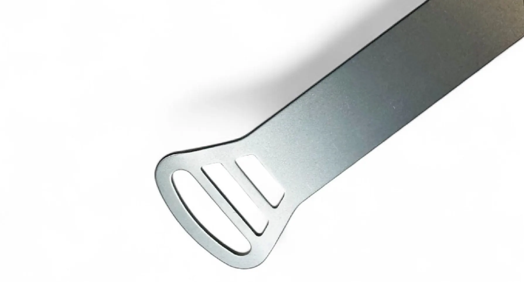A:3枚刃のうち、各刃は機械作業に加え、さらに職人による手仕上げでの研磨加工で微細な角度を追加しております。デリケートな舌に触れる部分ですので、非常に微細な加工となっており分かりにくいかもしれませんが、熟練職人の最後のひと手間で微細に角度の違う3枚刃が相互作用をもたらし、優しく汚れを浮かして落とす設計となっております。