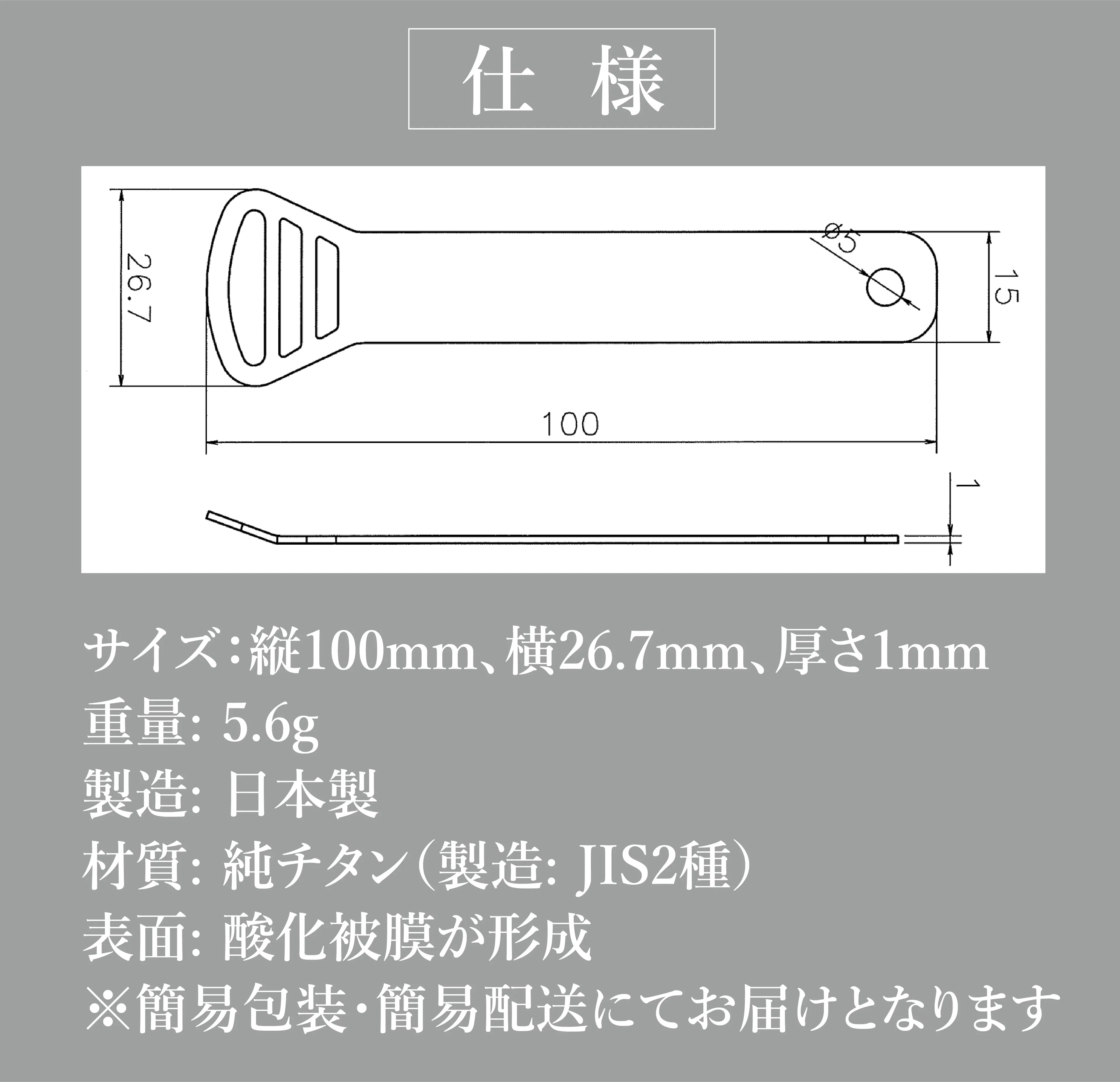 本製品は99%の純チタンを使用。