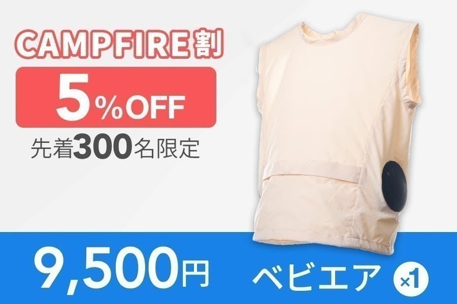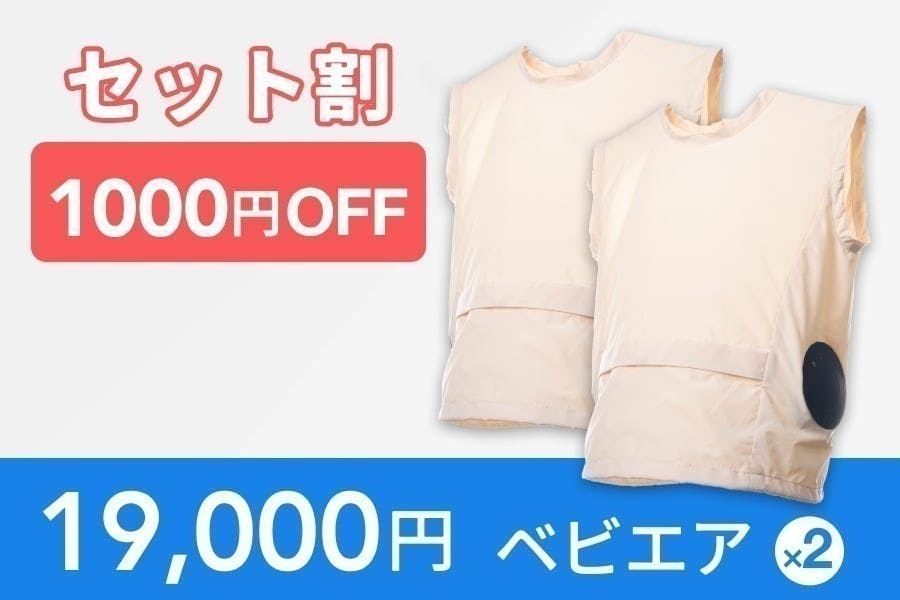 ベビエア1セット(ベスト1着+空調ユニット1セット)を通常価格より15%オフでお届けします。