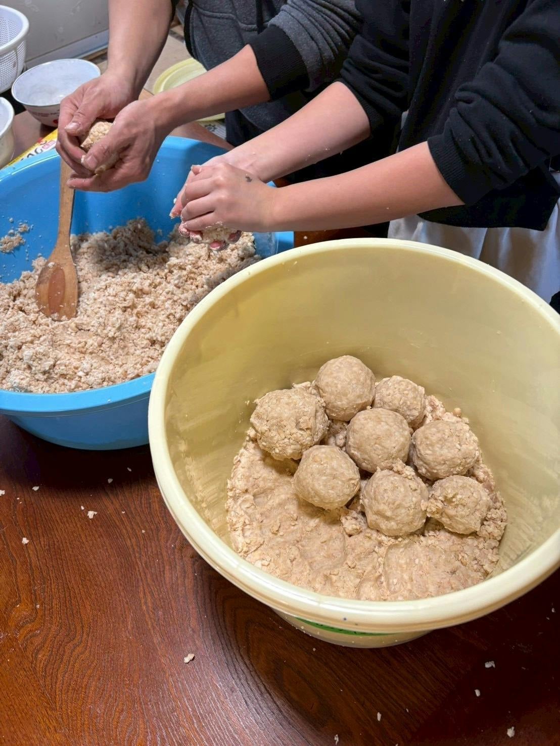 お昼ご飯は、大人も子どもも全員協力して一緒に作り、そして一緒に食べます。