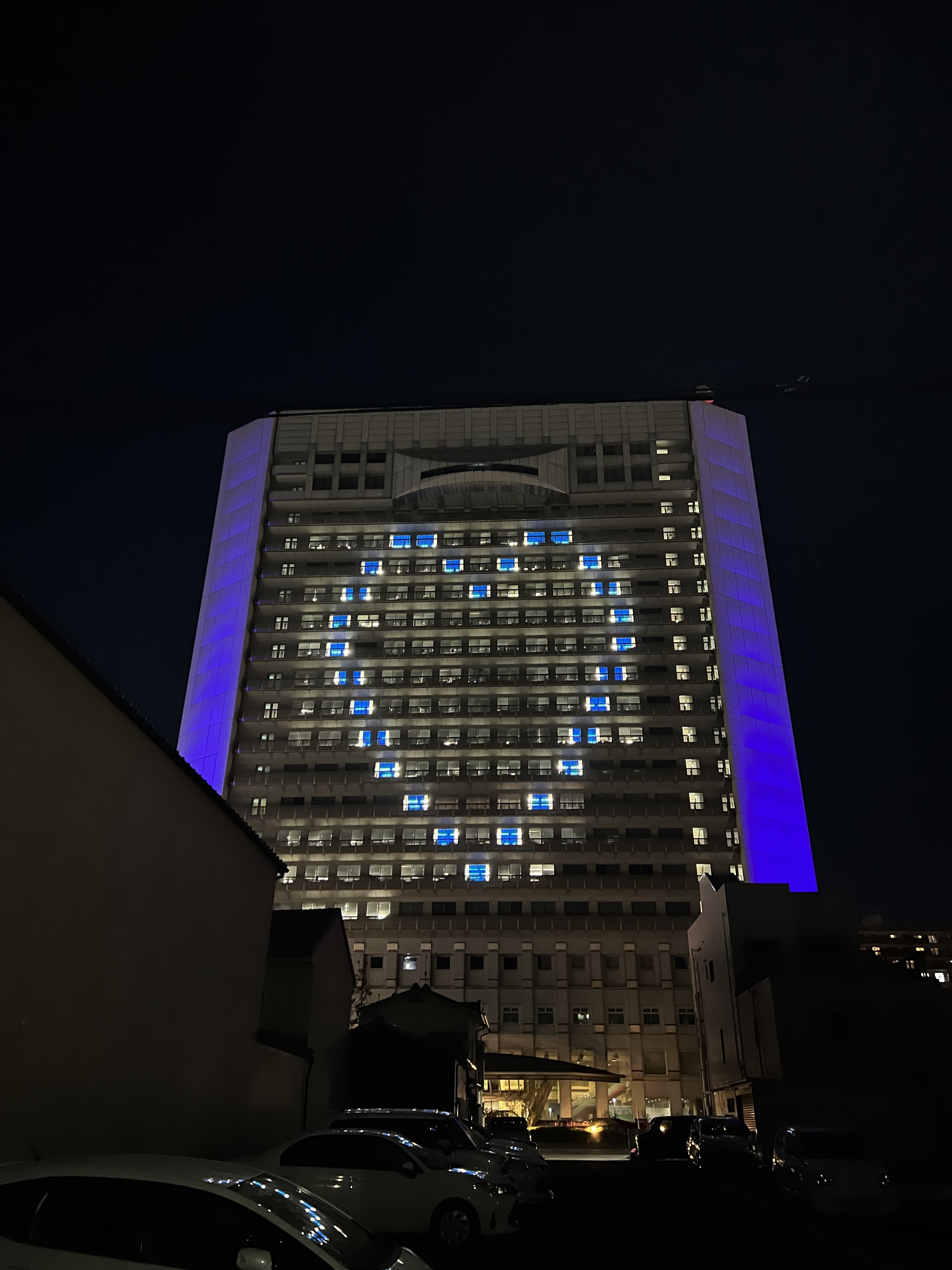 世界自閉症啓発デーに合わせ、市庁舎が青く染まります。