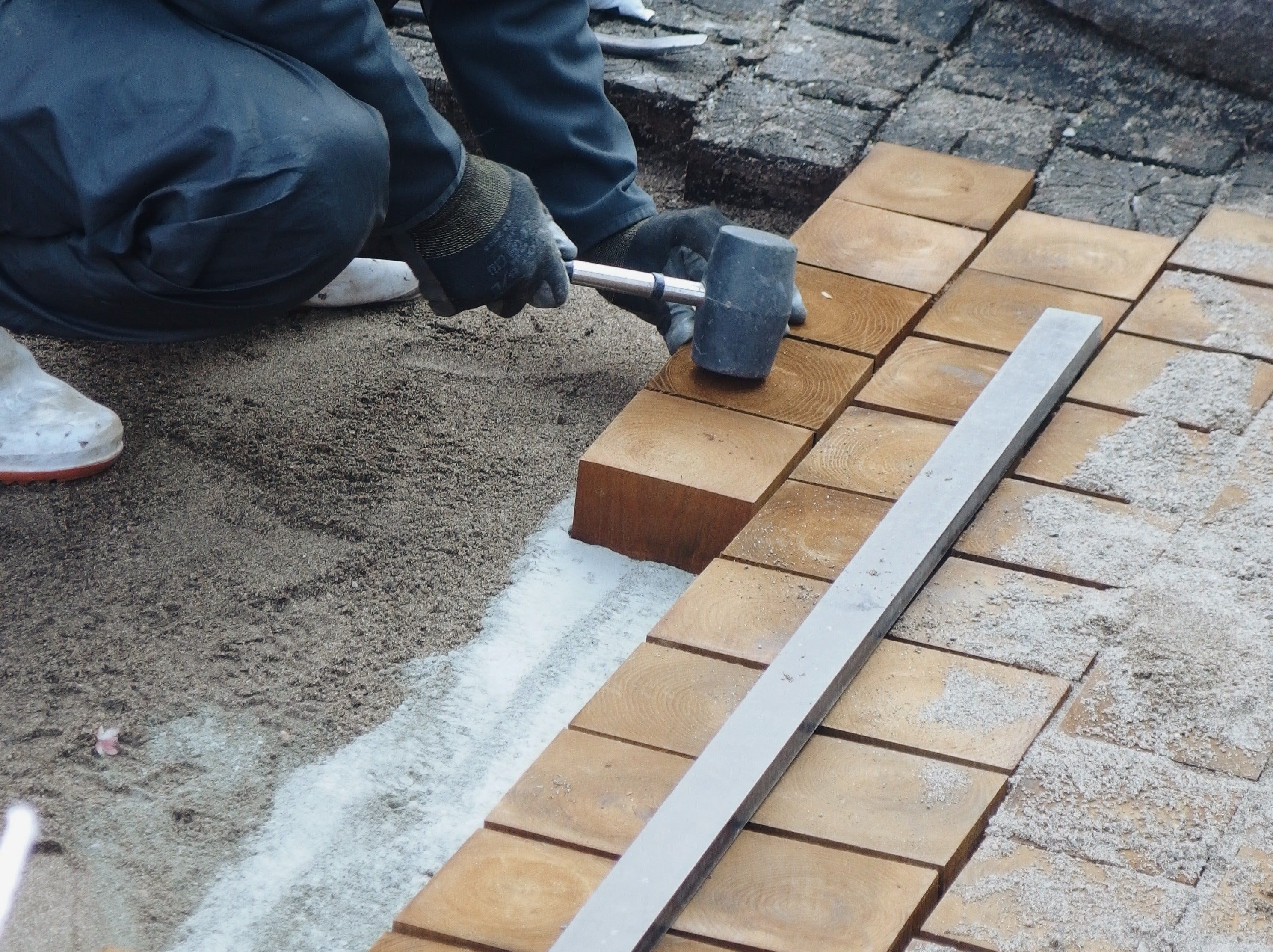 ↑小布施の道に多く見られる、栗の木レンガ。古くなったら修繕しながら、まちを育てる。