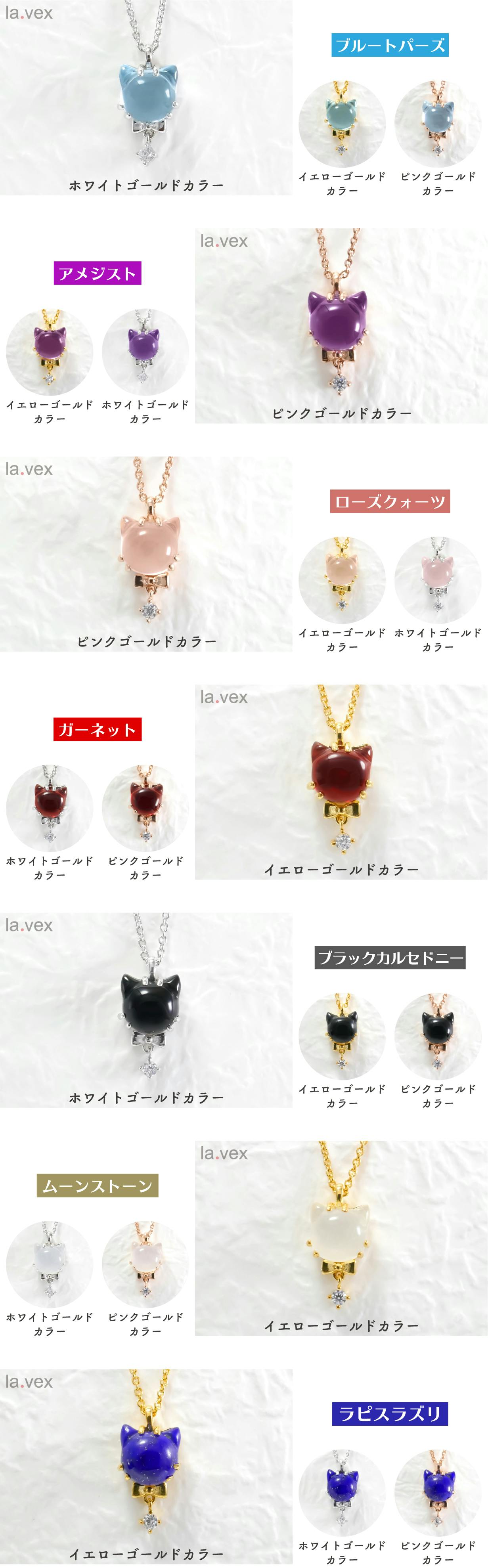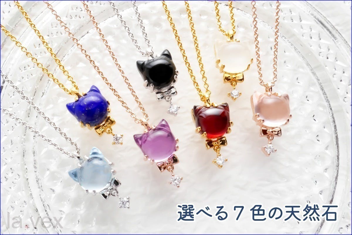 今回は、ねこ好きさんに向けて、全7種類のプレミアムな天然石で作ったねこをジュエリーに施した作品をお届けします。