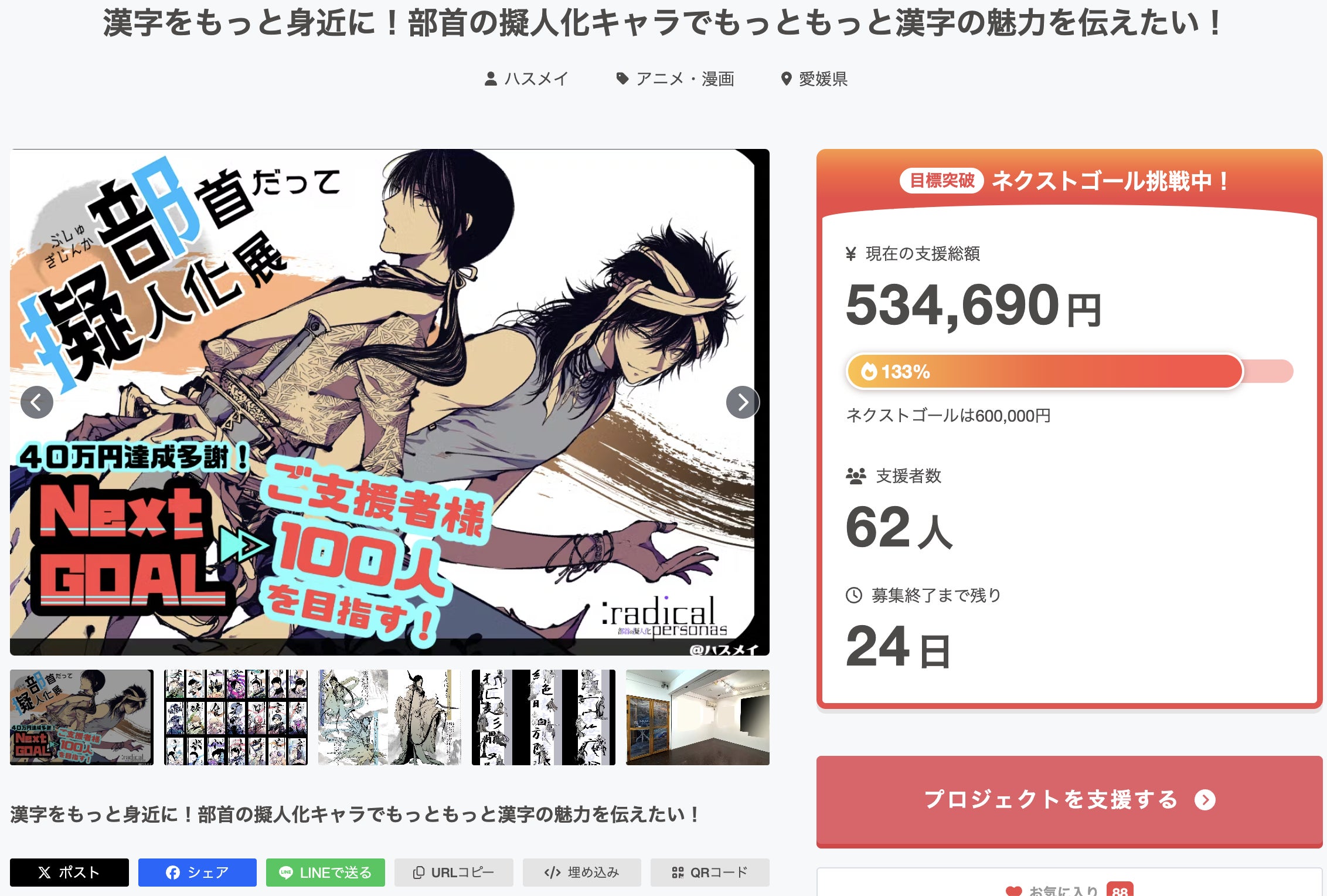 ご支援者様やお気に入りもじわじわ増え、現在133%です…!