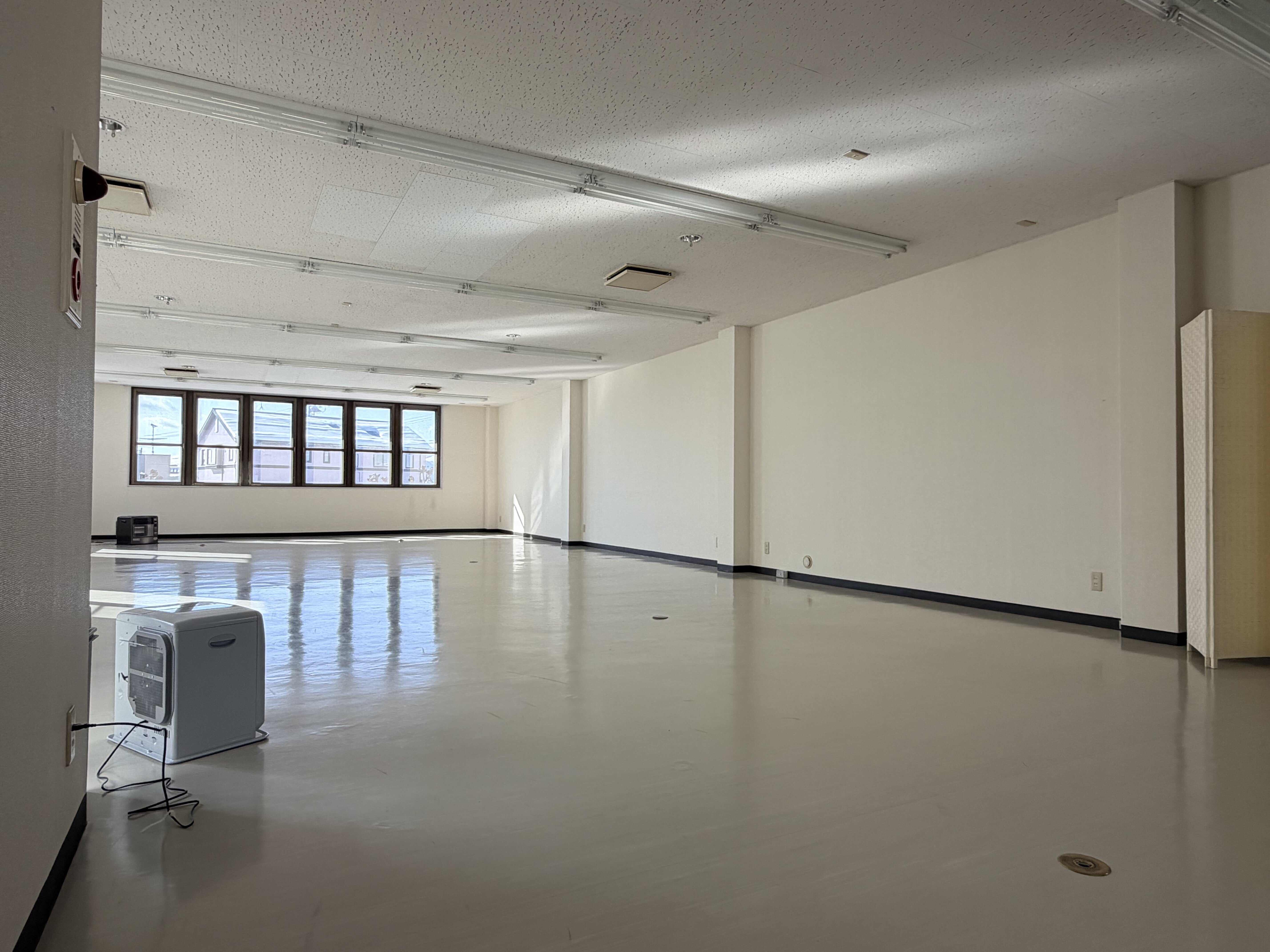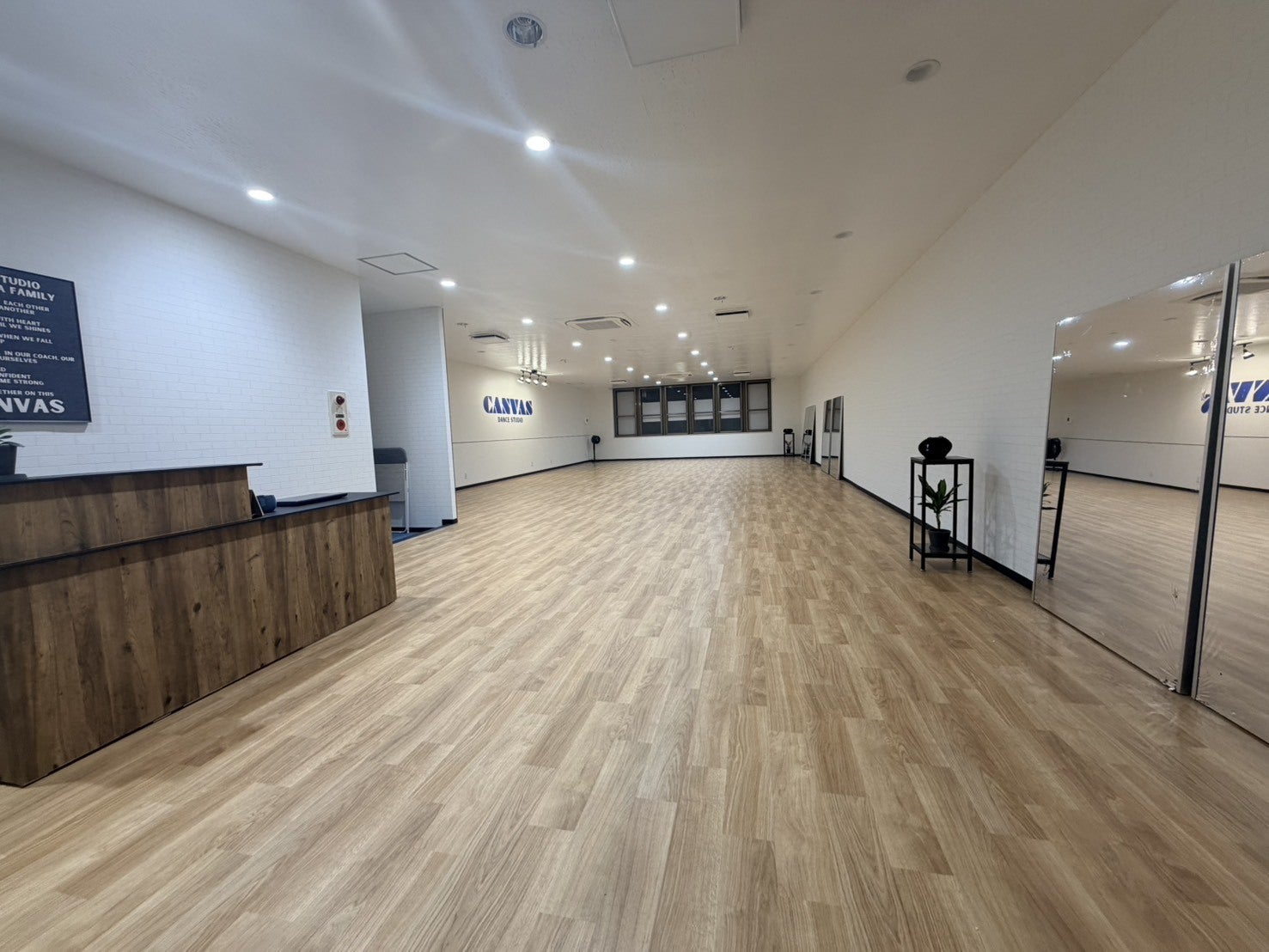 ところが、ここまでの環境を整えるだけで想像以上の費用がかかってしまい、ダンススタジオなのに肝心の鏡を準備出来ないという状況に陥ってしまいました。鏡の仕様も、子どもが行き交うスタジオで万が一割れても散らばらない飛散防止加工の鏡をと考えると高く、さらにこの広すぎるスタジオに行き届く数となると一層高額となり、手が届かなくなってしまったのです。