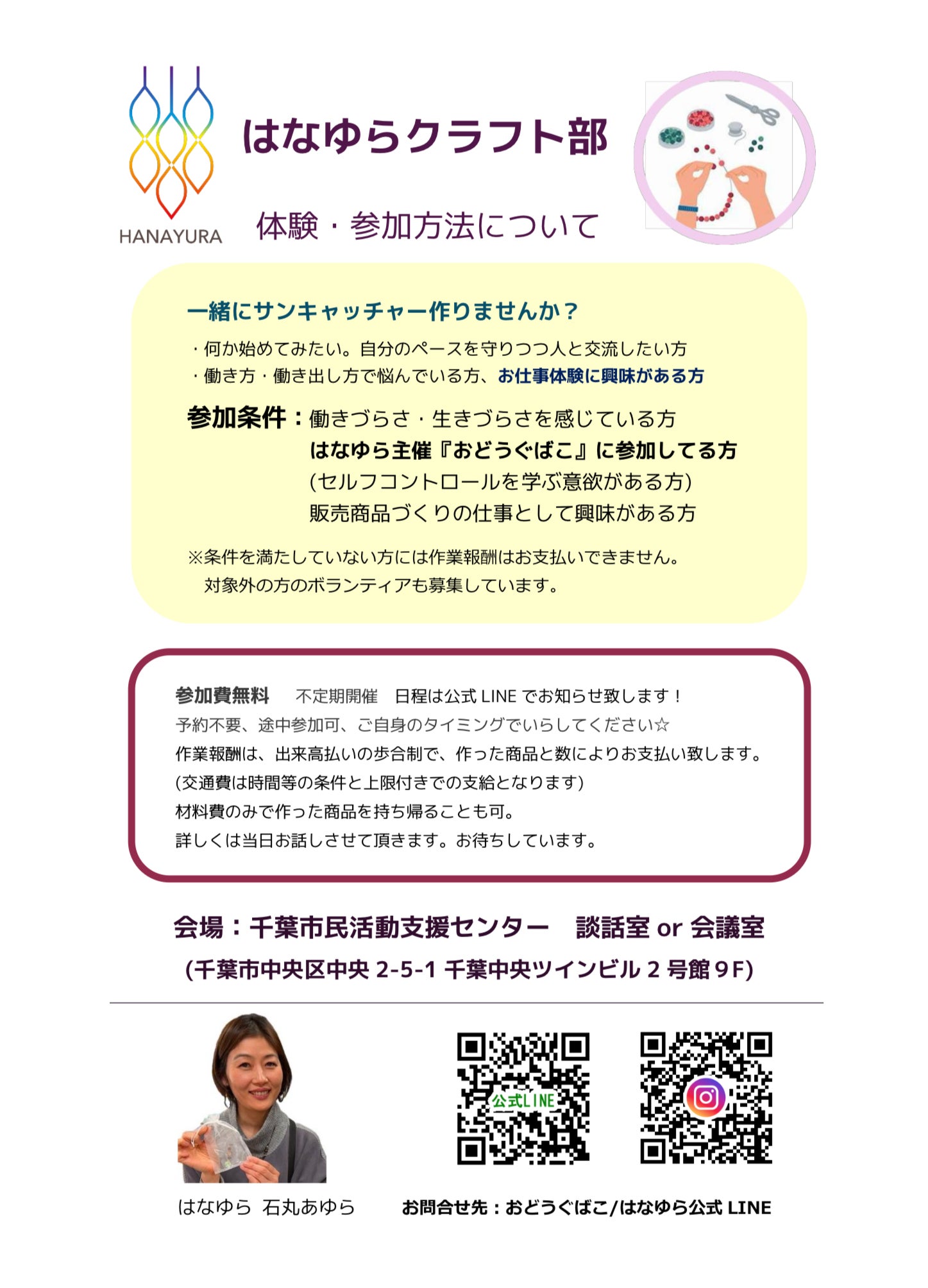 また、「はなゆらクラフト部」では、サンキャッチャー制作などを通じて、人と関わりながら自分のペースで社会とつながる機会を創出。
