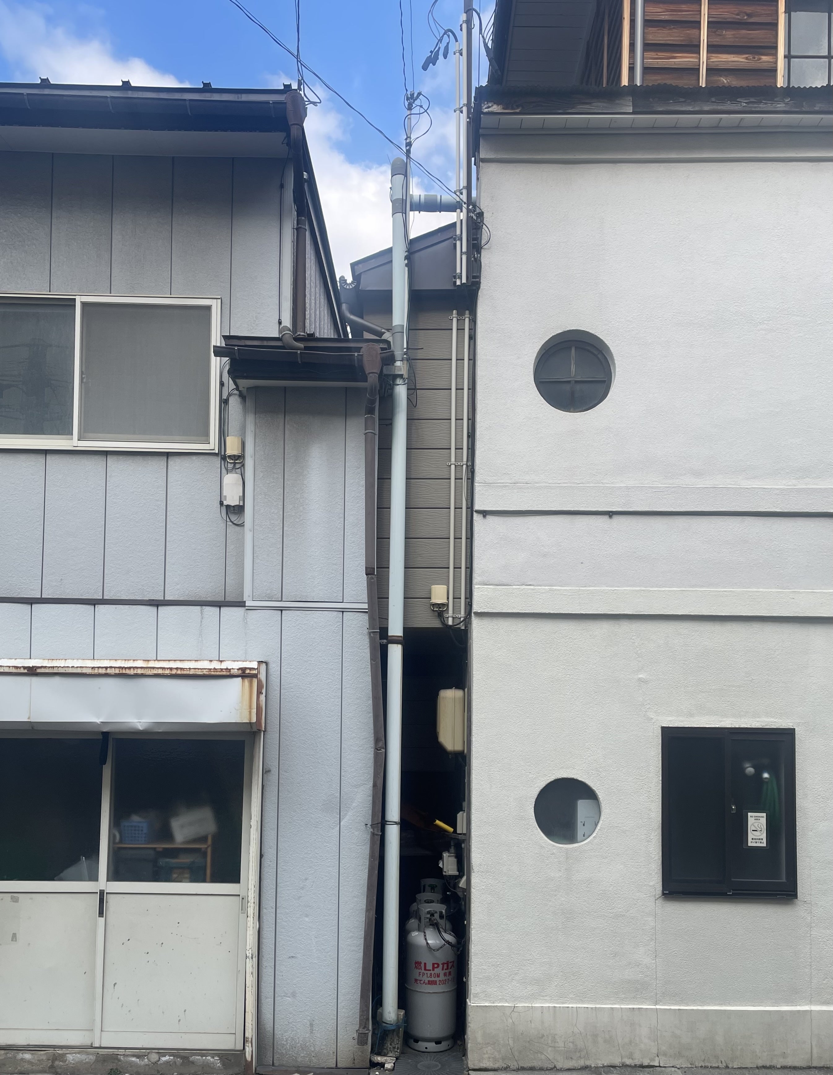 ただし、当店の建物は1901年築の木造3階建てで、隣接建物との距離が極めて近く、内部の構造も図面が残っていないため、施工上の制限が非常に多いという特徴があります。