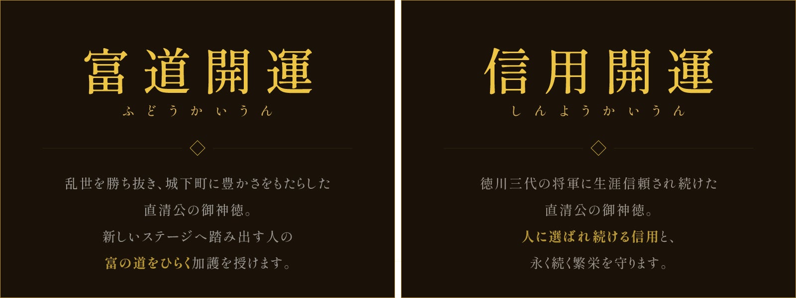 ※御神徳は信仰に基づくものであり、運勢・効能を確約するものではありません