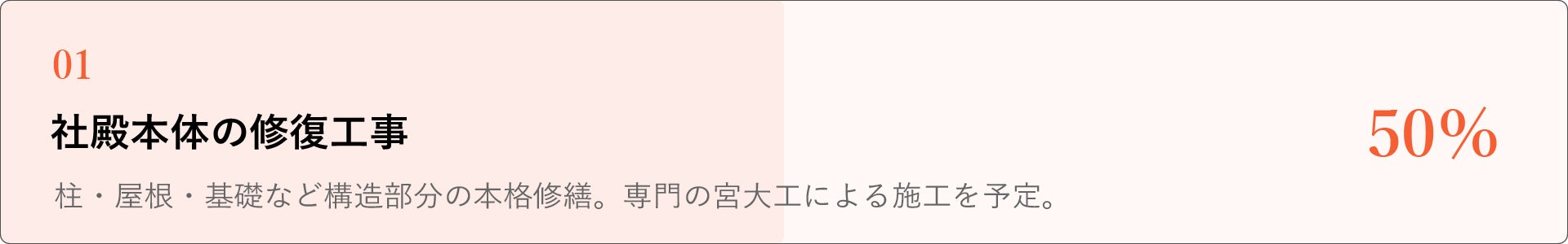いただいた支援は、すべて社殿の修復に使います。一円一円が、230年の歴史を次の世代につなぐ力になります。
